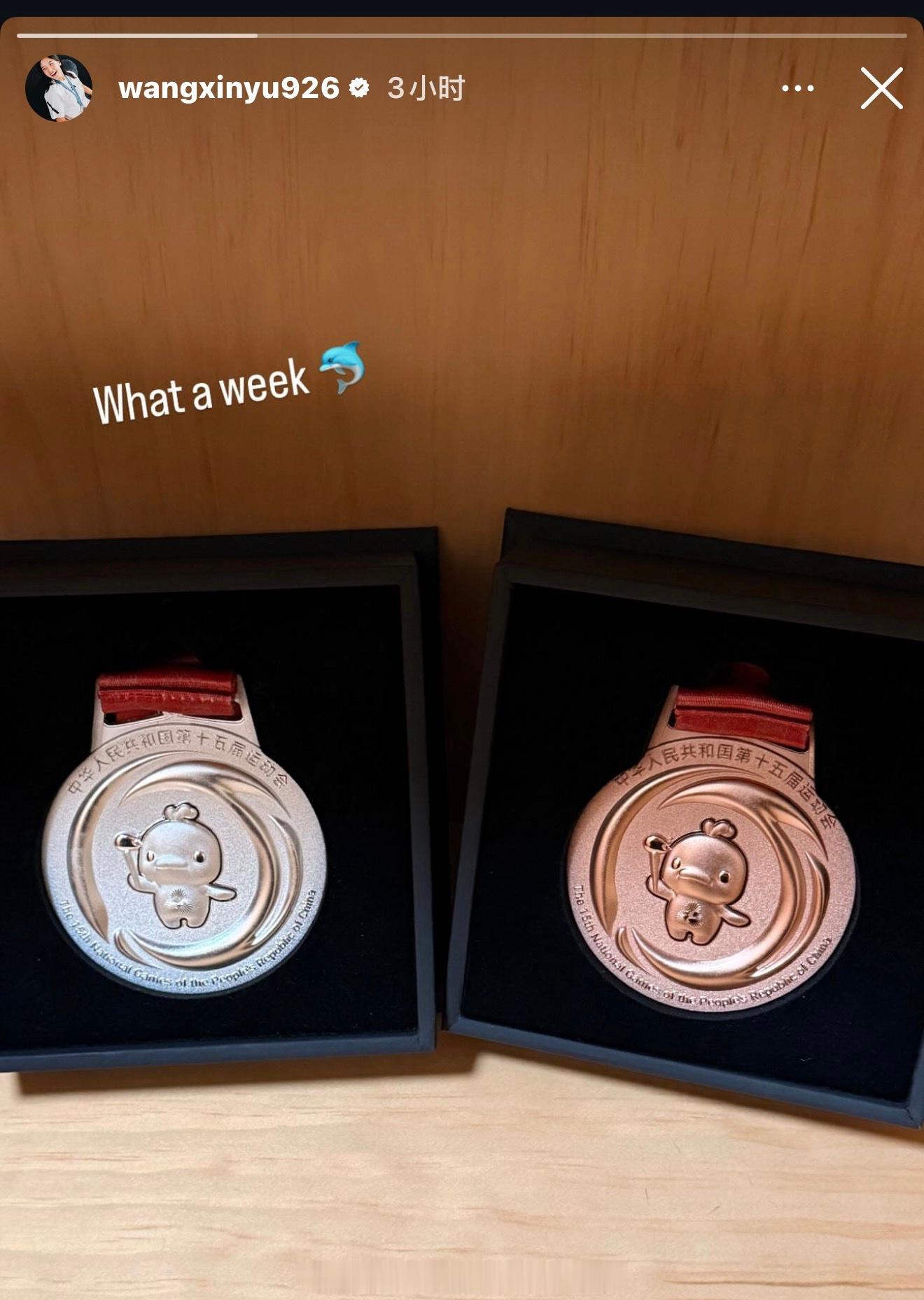 王欣瑜:多么美好的一周。我也好想要啊!一银一铜。