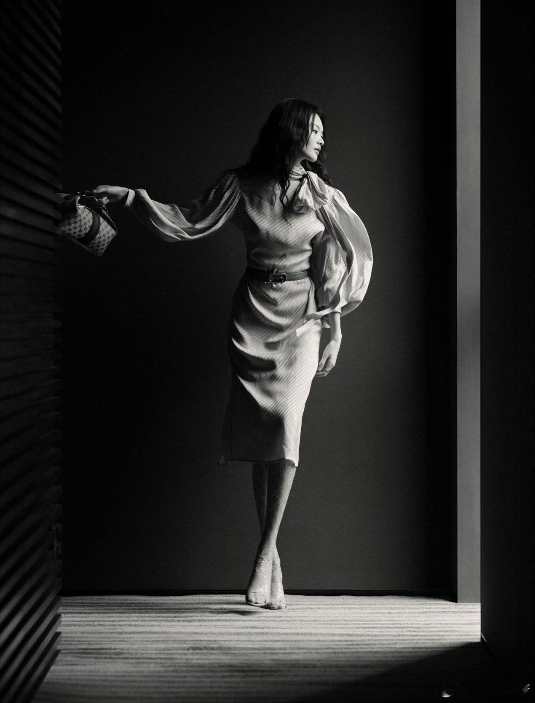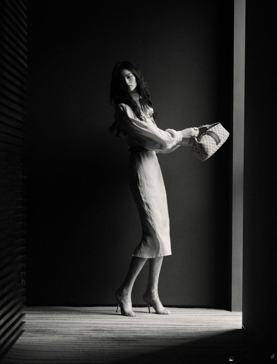 贺聪 复古条纹裙与经典手袋的邂逅, 漫步在都市的温柔光影里。 岁月静好,优雅