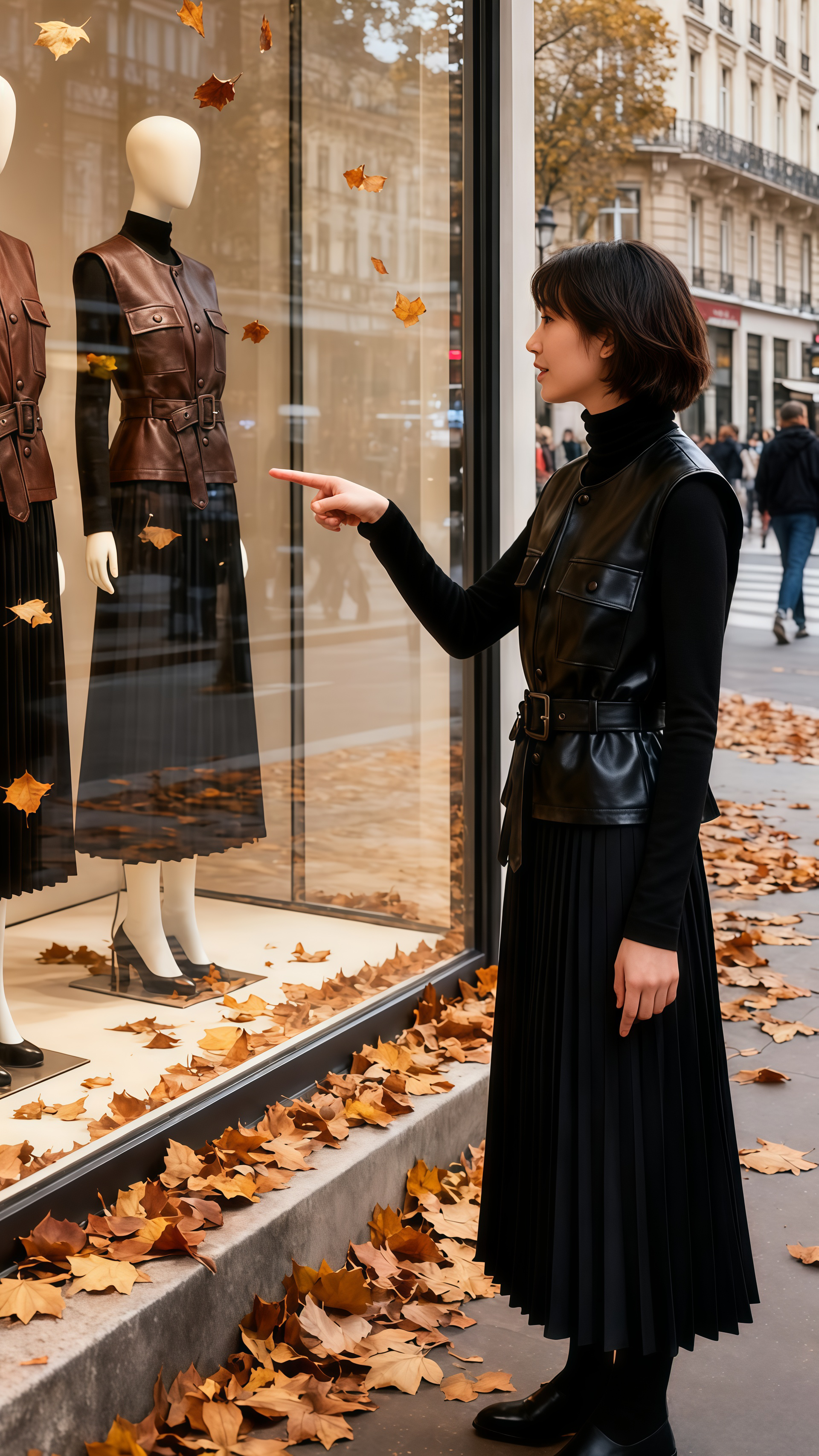 通勤穿搭|黑色大衣的精致干练,皮质短裙衬出苗条曲线,波点黑丝藏着性感妩...