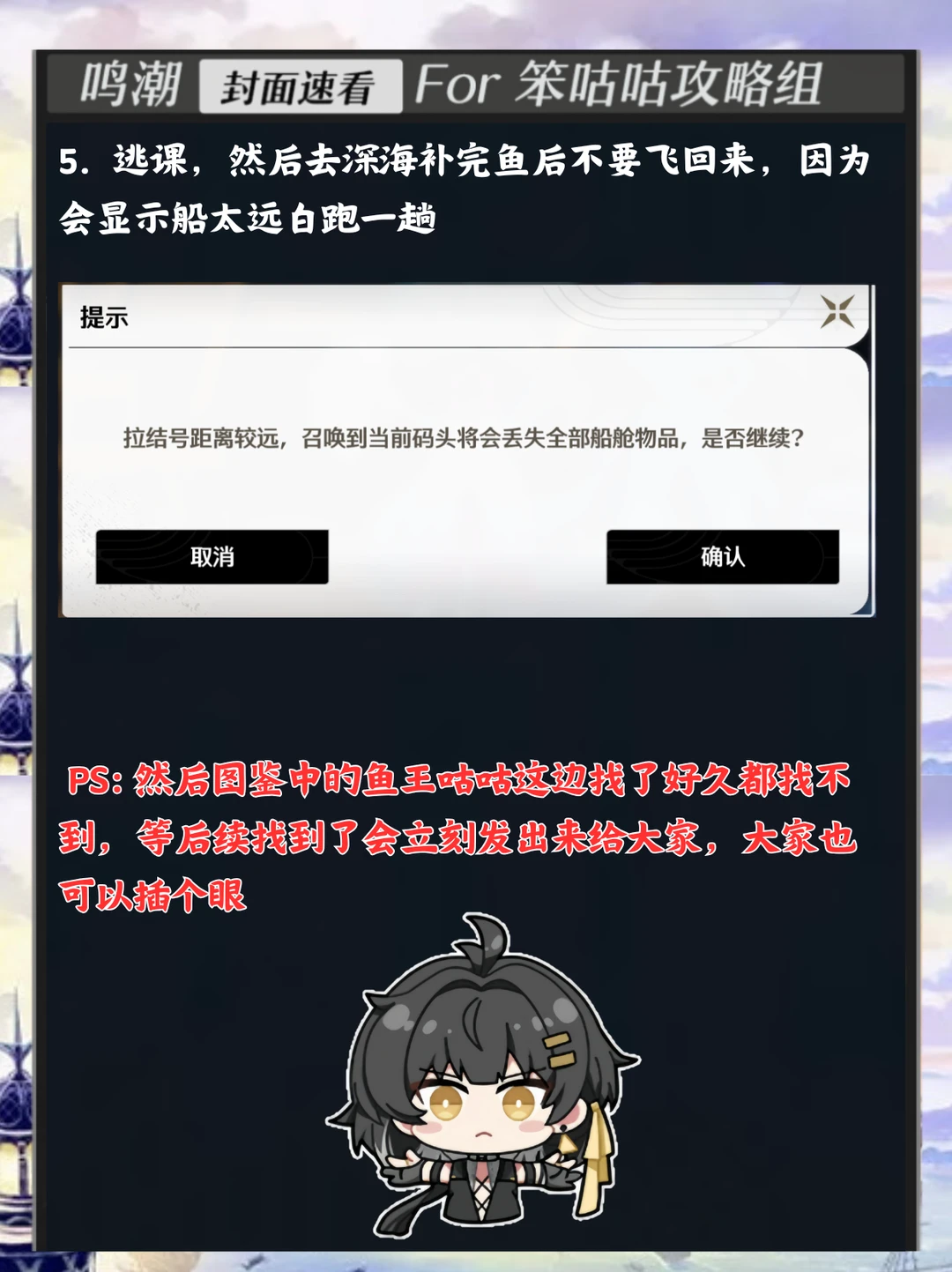 鸣潮 鸣潮创作激励 鸣潮攻略 踏上鸣日的征程 鸣潮新版本前瞻 鸣潮老人鱼海 鸣潮活动 鸣潮飞鸟轻鸣浪涛欢唱 报~笨咕咕来也! 2.1版本在今天更新了,老人与海活动上线后,咕咕也是马不停蹄的肝了三个小时,把第一天的内容和鱼的普通图鉴全部打满了,然后笨咕咕这边也把这三个小时的钓鱼捞心得告诉大家。