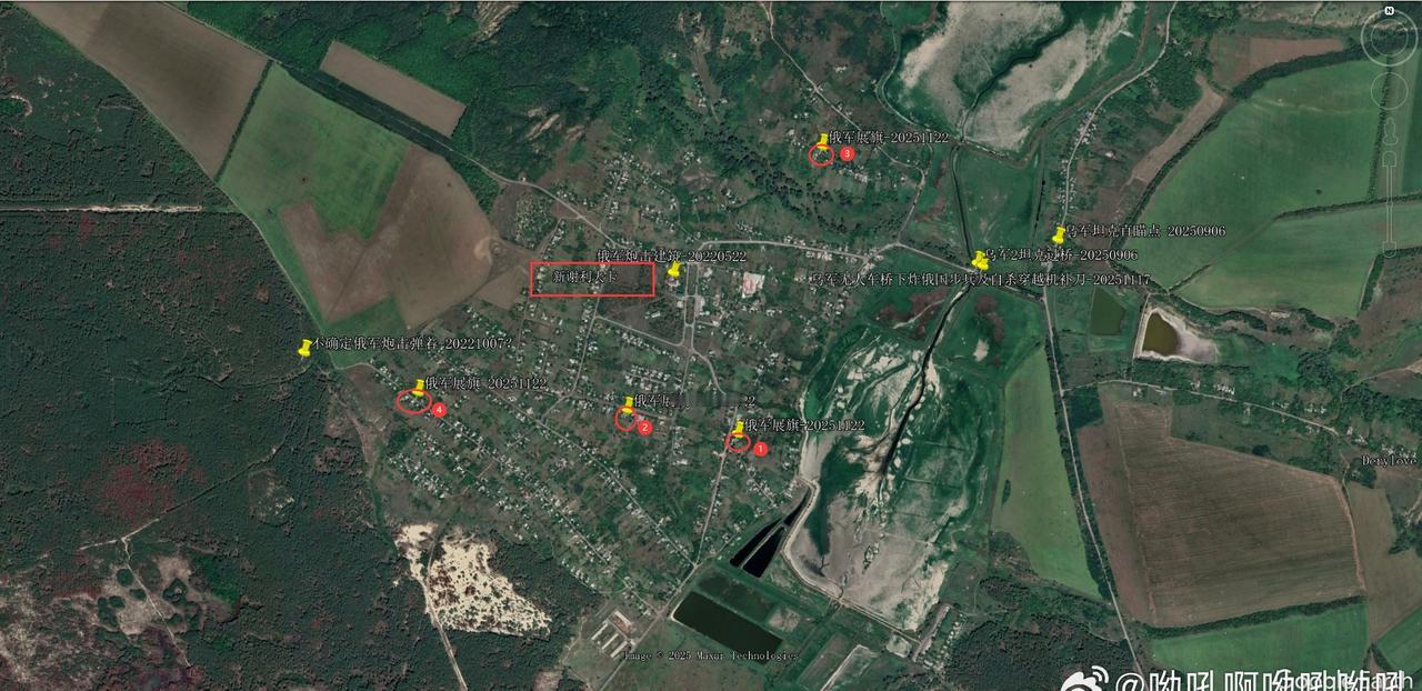 原来昨天20点55分 俄国人还在利曼西北侧的 新谢利夫卡 Новоселівка 插了旗 原视频给了插旗点的卫图标记方便大家核对,后面2个插旗点他们标错位置了。第3面在 49.076790° 37.700469° 第4面在 49.068483° 37.679837° 这边乌军的亚速 出过几个画质精美的视频,但还是没怼过当面俄军。不过这边的乌军依托南侧树林掩护,还可以继续且战且退。但利曼就很难保了~ ------------ 第20集团军(20_армии)近卫部队解放了顿涅茨克人民共和国(ДНР)的新谢洛夫卡定居点(н.п. Новоселовка) ------------
