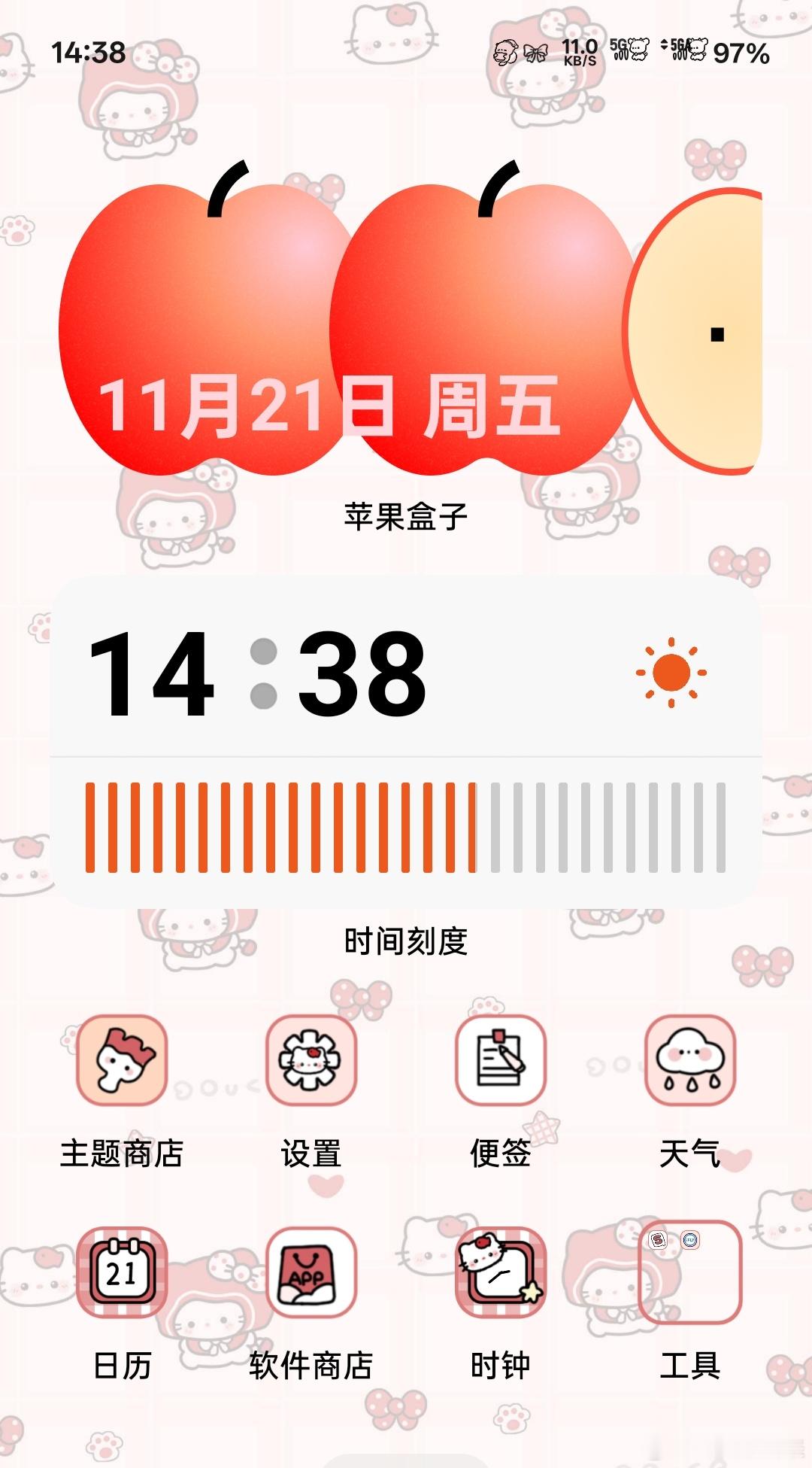 我不知道我的主题桌面这么萌是什么意思?可能是我是萌妹的意思吧,Kitty我宣你哦