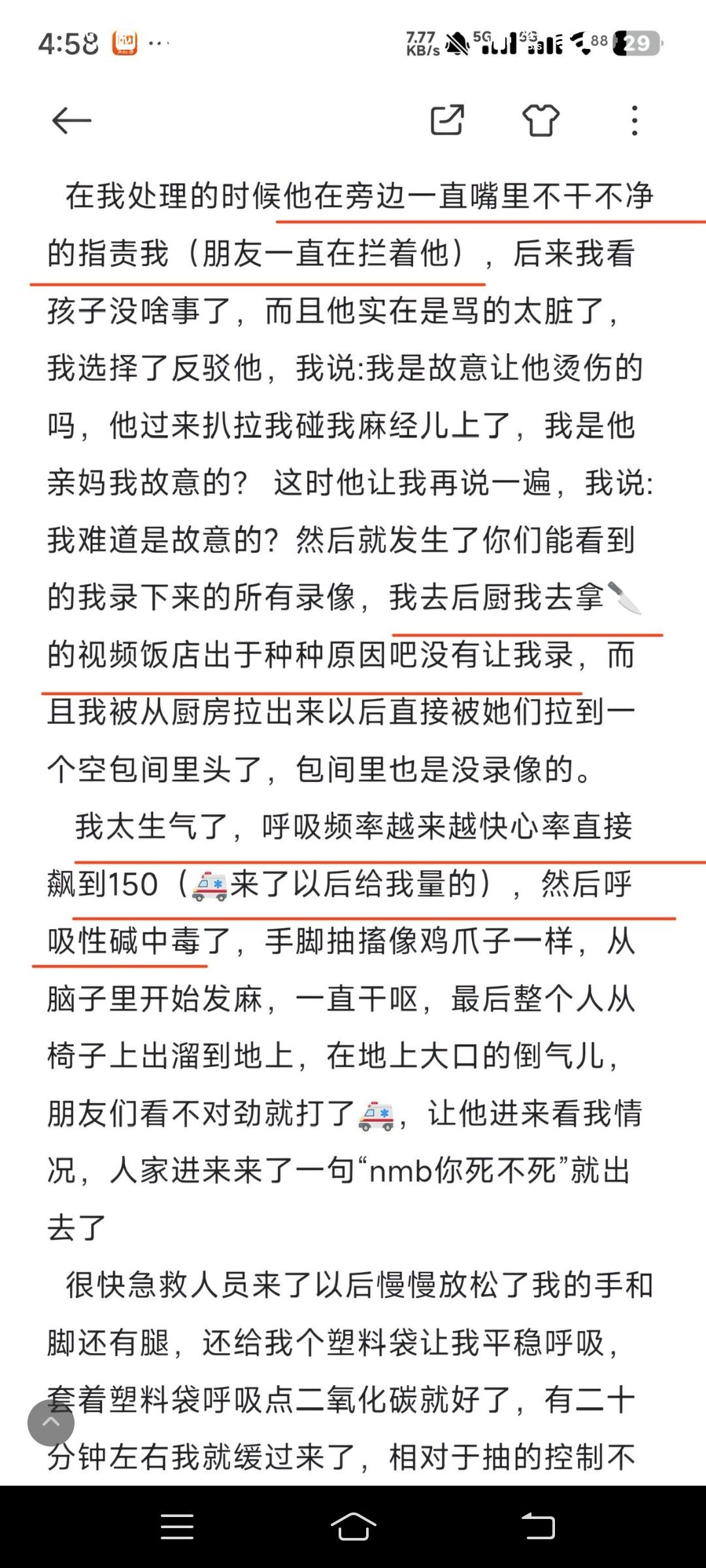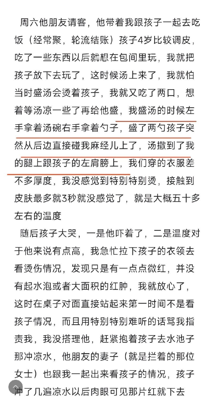 男子带老婆和孩子参加朋友聚餐,在聚餐过程中,他老婆盛汤时被孩子撞到烫到了自己和孩子,遭男子辱骂猛踹三脚并扇耳光。他老婆被气到呼吸性碱中毒送医…… 他老婆感到很委屈,表示:“我是孩子亲妈怎么可能是故意的”。 这个事情被他老婆上传到了网上,却被众多网友吐槽他老婆是为了起号直播圈钱。 这个事情咱也不好判断,但这个男的家暴是已经实锤了的,当着他的朋友他都这么干,可想而知两个人独处的时候,男的肯定也家暴过。奉劝这个女的,早点从这段感情中解脱出来。 评论区的诸位大神,你们怎么看?