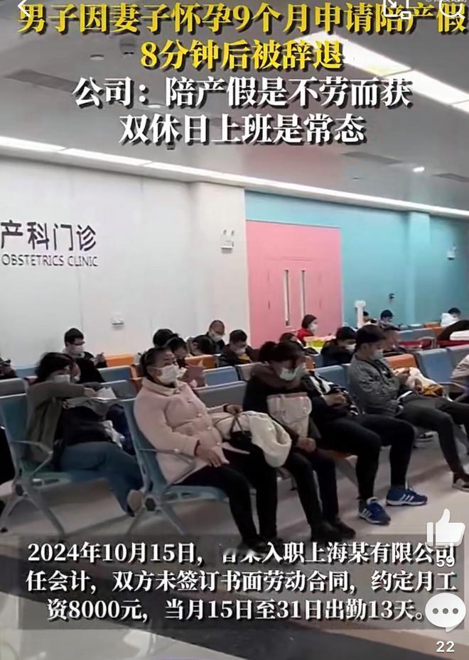 这事儿可真够气人的!上海一哥们,老婆都快生了,他按规矩向公司申请陪产假,想陪着媳妇儿迎接孩子出生。结果倒好,假条递上去刚8分钟,公司反手一个开除通知甩过来,理由居然是“旷工”。 这公司的骚操作还没完,在法庭上他们居然大言不惭地说,员工申请陪产假是“想不劳而获”,还理直气壮地声称“双休日员工自觉来工作应属常态”。这种话也说得出口,简直是赤裸裸地不把法律放在眼里。 好在法院眼睛是雪亮的,最终判决公司违法解除劳动合同,判他们赔了8000块钱。这判决结果,看着就解气! 要我说,这种公司就是欠收拾。陪产假是男职工的合法权利,白纸黑字有规定的。而且这哥们儿才入职没多久,公司连劳动合同都没跟他签,本身就违法在先了。 现在有些企业真是霸道惯了,总觉得给员工发工资就能为所欲为,动不动就想踩在员工头上。这次法院的判决,也算是给这些企业提个醒:法律面前,别太嚣张! 这哥们儿也挺刚,直接劳动仲裁、一审、二审一路扛下来,最后硬是争回了这口气。要换成别人,可能想想麻烦就算了。但正是这种“不惯着”的劲儿,才能让那些无良公司长点记性。 所以,遇到这种明显不占理还硬要欺负人的公司,该刚就得刚。打工归打工,但不能连基本权益都不要了。