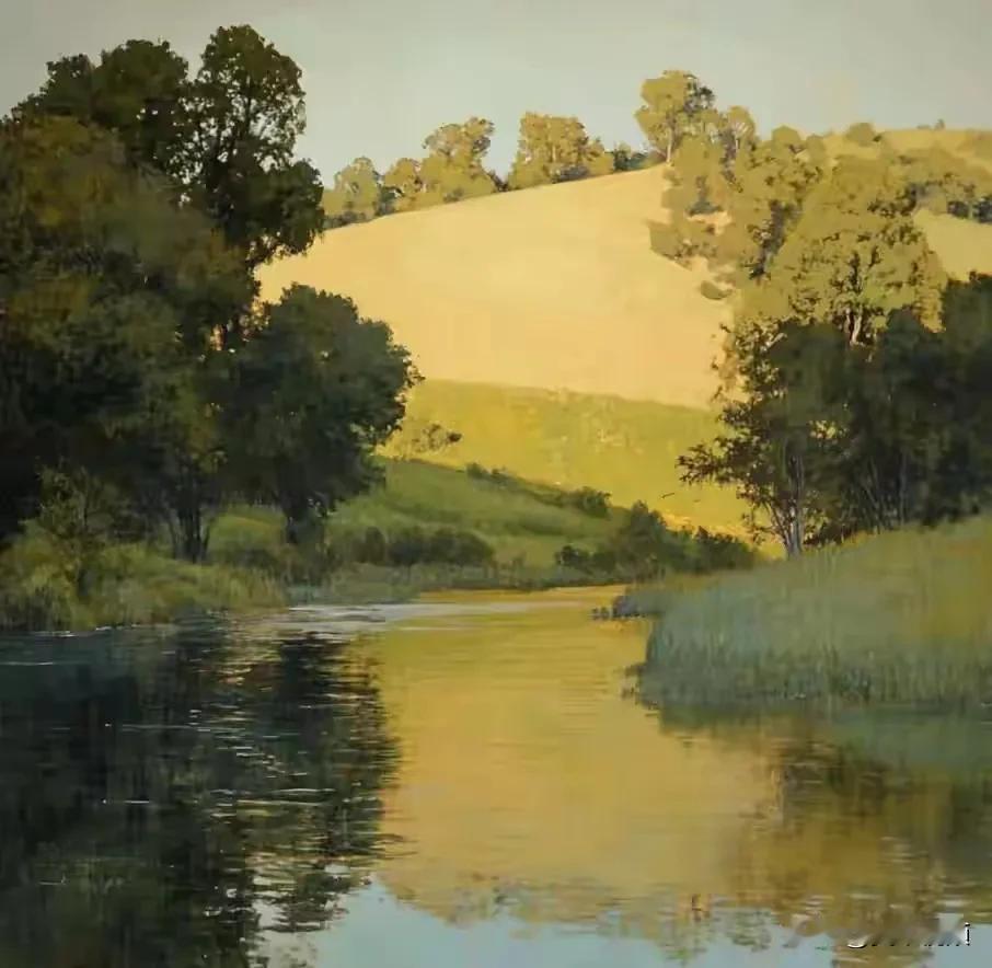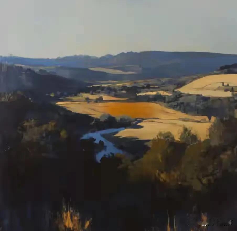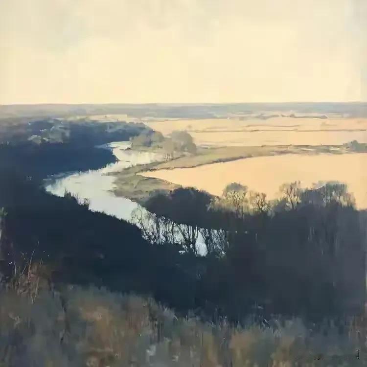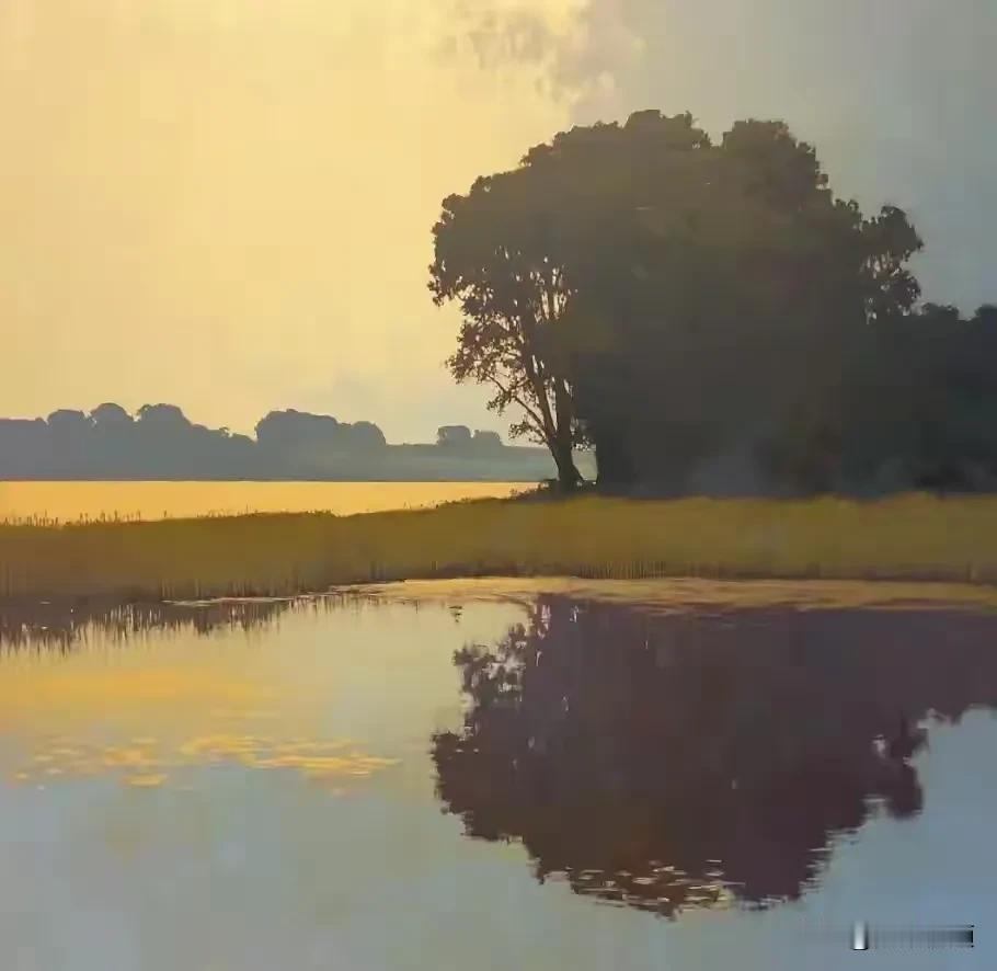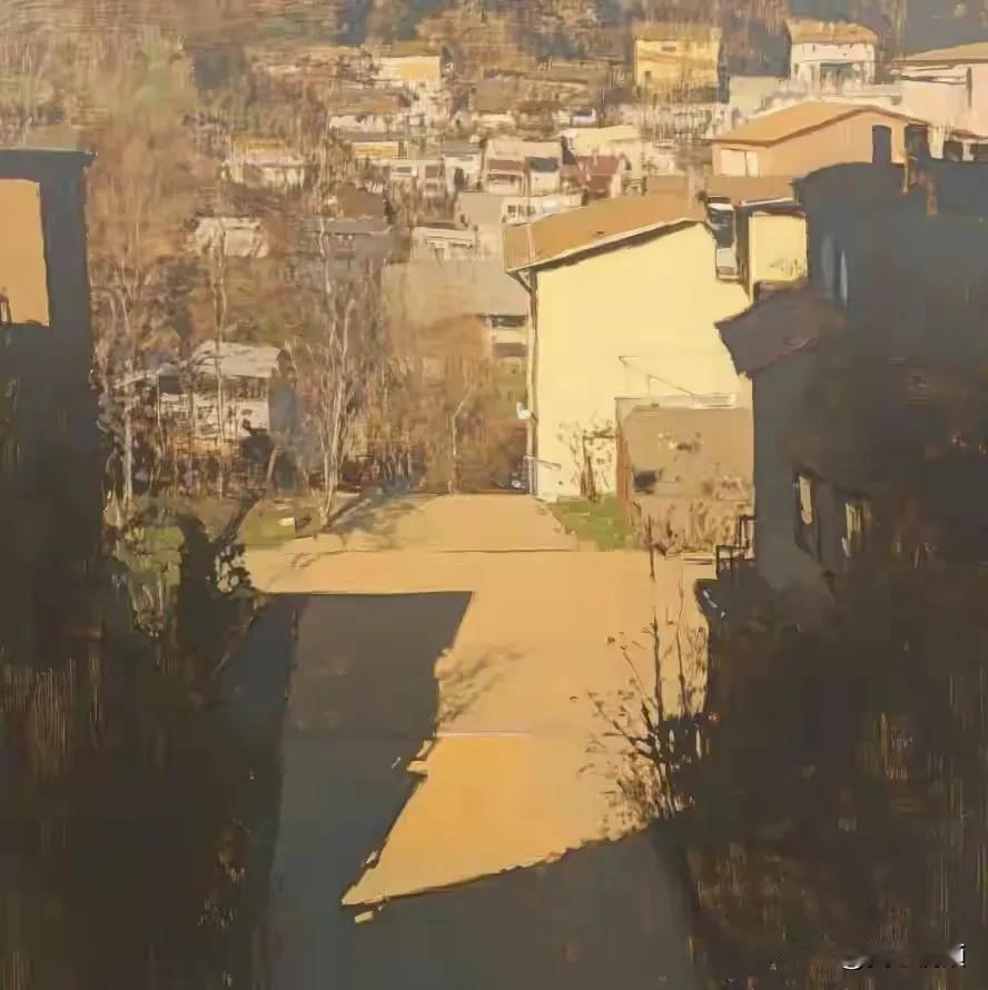 那些本应清晰的景观,被揉碎成流动的光影碎屑,在画布上晕开一层朦胧的薄纱,既裹着静谧的温柔,又藏着隐秘的悸动,诗意在明暗交错间悄然流淌。