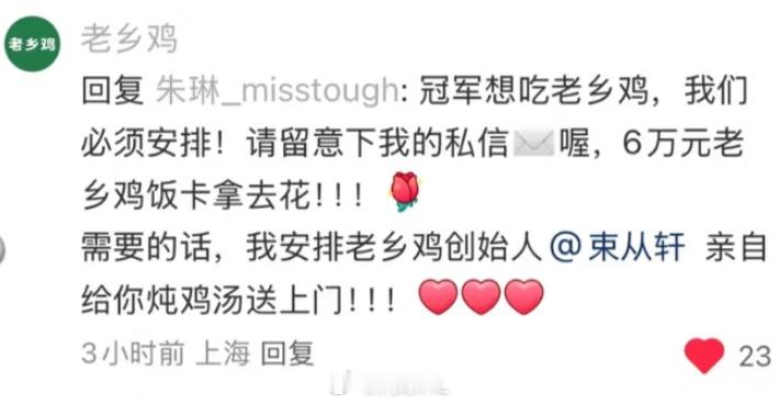 全运会冠军朱琳,获赠6W的老乡鸡饭卡