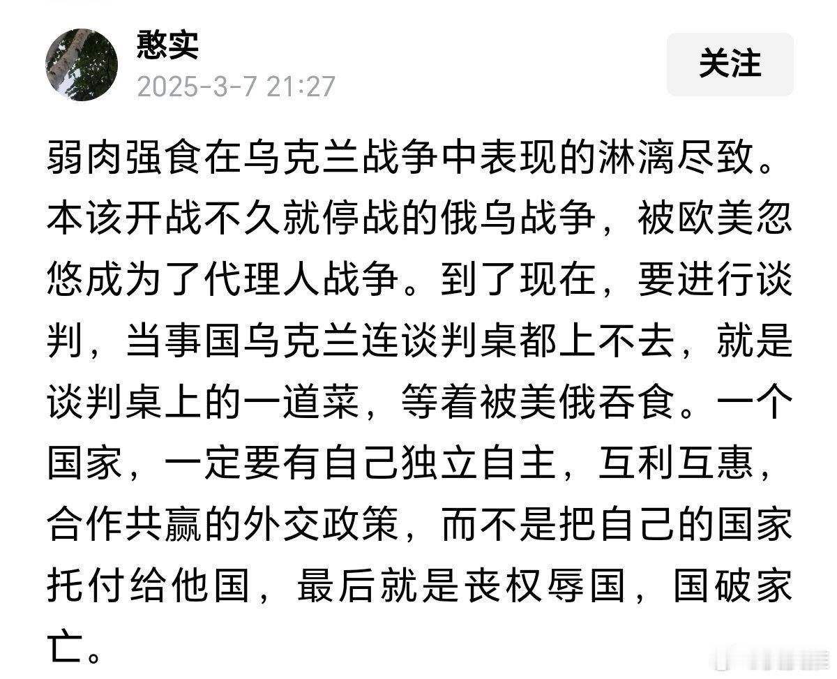 弱国无外交,乌克兰被欧美忽悠瘸了,结果轮到谈判时,还是上不了桌。一位网友形容的很贴切,现在的乌克兰就是谈判桌上的“一道菜”,等着被美俄吞食。。。