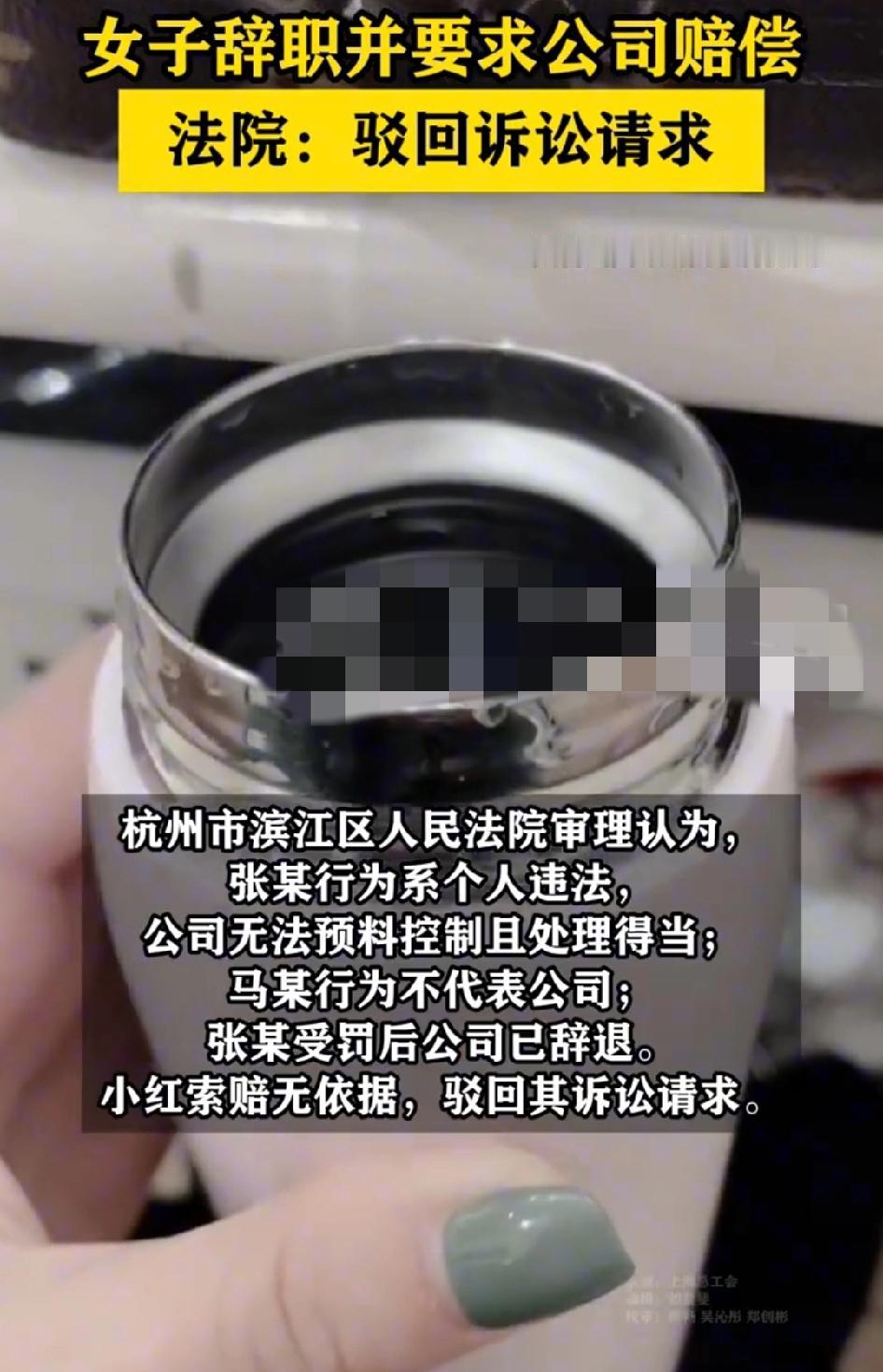 张某先后3次趁办公区无人,在同事小红办公桌附近自慰,并将精液放入其保温杯 水杯多次被男同事射入精液,小红发现后报警,张某被行拘3日,女子辞职并要求公司赔偿。法院:驳回诉讼请求,马某行为不代表公司,张某受罚后公司已经将其辞退,公司无法预判且处理得当 自己的东西男人自己喝就行!恶心人,告他传播艾滋病!有些调皮捣蛋的男人真会模仿。其实这种事私下解决,不要传的沸沸扬扬,可能引起变态效仿,那种变态严肃处理,应该化学阉割!怎么才拘留三天呢?三年都算轻判了!