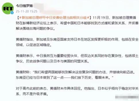 近日新加坡总理呼吁中日妥善处理当前相关分歧。希望中国和日本能够缓和紧张关系,并妥善解决围绕台海问题的争议。”他还声称,“新加坡及东南亚国家支持日本,在安全领域,以促进区域稳定”。 日本首相高市早苗之前在众议院的发言才是搅动局势的关键。她直接宣称 “台湾有事就是日本有事”,后来更升级成 “台湾有事就是日本存亡危机事态”。 明眼人都清楚,台湾问题是中国的内政,跟其他国家没有任何关系,这种把日本安全和中国台湾地区强行绑在一起的说法,无疑是踩了红线,中日关系瞬间就绷紧了。 有意思的是,黄循财对这番挑衅言论避而不谈,反而判断日本 “倾向于稳定对华关系,而非升级矛盾”,还希望中国能采取相同态度。 他甚至提出,中国该像东南亚各国一样 “原谅日本”,把历史搁置才能改善关系。这就让人费解了,新加坡自己在二战时也曾遭受日军侵略,无数华人被屠杀,那段历史明明是惨痛的记忆,怎么到了劝中国的时候,就成了可以轻易放下的 “心结”?有声音尖锐地反问,如果放下历史这么简单,新加坡是否考虑改回日占时期的 “昭南岛” 名字,这种反问虽直接,却点出了其言论里的矛盾。 更让人在意的是他口中 “东南亚国家支持日本在安全领域发挥作用” 的说法。要知道,日本在二战时给整个东南亚都带来了深重灾难,如今新加坡突然牵头说支持其在安全领域扮演更重要角色,事先到底征询了多少东盟国家的意见? 柬埔寨、印尼这些国家真的都认同吗?这种未经协调就代表他人的做法,不光可能引起其他国家不满,也透着一股外交上的自负。而且新加坡本身长期和美日保持密切军事合作,武装力量和美军深度捆绑,在这种背景下谈 “劝和”,公正性难免让人打问号。 黄循财的发言里还有个明显的问题,就是把台海问题说成是中日之间的 “争议”。这根本不符合事实,台湾问题纯属中国内政,从来不是什么中日之间需要解决的争议,任何外部国家都没资格指手画脚。 要是真想去调解,其实中日之间真正有历史遗留问题的是琉球群岛,那里曾是独立王国,被日本武力吞并,这才是值得关注的焦点,可他对此只字未提。 再说历史和解这事儿,从来都不是受害者单方面无条件原谅就行的。德国能得到各国谅解,是因为它做了彻底的反省、真诚的道歉和实际补偿,可日本在历史问题上一直含糊其辞,军国主义思潮还时不时抬头。这种情况下空谈 “原谅”,本质上就是替日本的历史修正主义找借口。 黄循财的出发点可能是想维护区域稳定,但选边站队式的劝和根本起不到作用。真正的区域稳定,需要的是各国都尊重事实,不干涉他国内政,而不是要求受害方牺牲核心利益去妥协。 这番发言到底是真劝和还是拉偏架,不同人有不同看法。你觉得新加坡这番表态能起到缓和作用吗?欢迎在评论区说说你的观点。