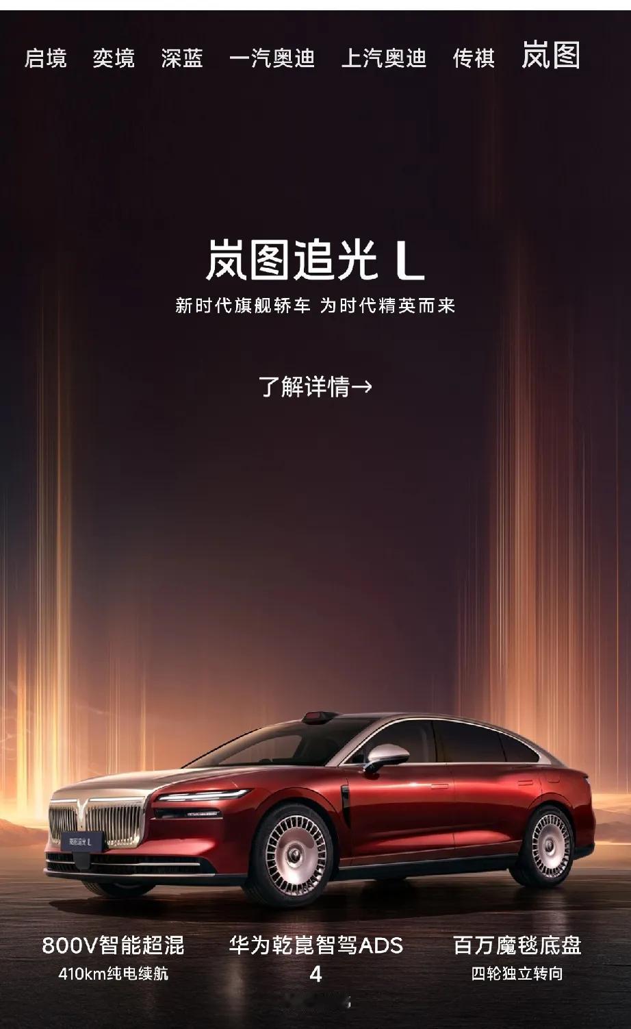 猛士和岚图、奕境进驻华为乾崑APP,首批进驻品牌在APP上一共有9个,其中有7个品牌可以在APP上选车购车。还有两个就是昨天刚刚发布的奕境和启境品牌。 华为乾崑合作品牌10月总销量突破10万辆。这里的华为乾崑可能替代了HI模式的说法,就像鸿蒙智行替代了智选车模式的说法? 但是我们看到除了6月东风公司注册了东风奕境品牌外,华为旗下的引望智能技术有限公司在4月还注册了奕境品牌。 可见运营华为乾崑APP的公司应该是引望智能……目前华为乾崑合作的境字辈只有东风奕境和广汽启境。 其他境可能与华为有合作,但是还没有达到这一境界上来。