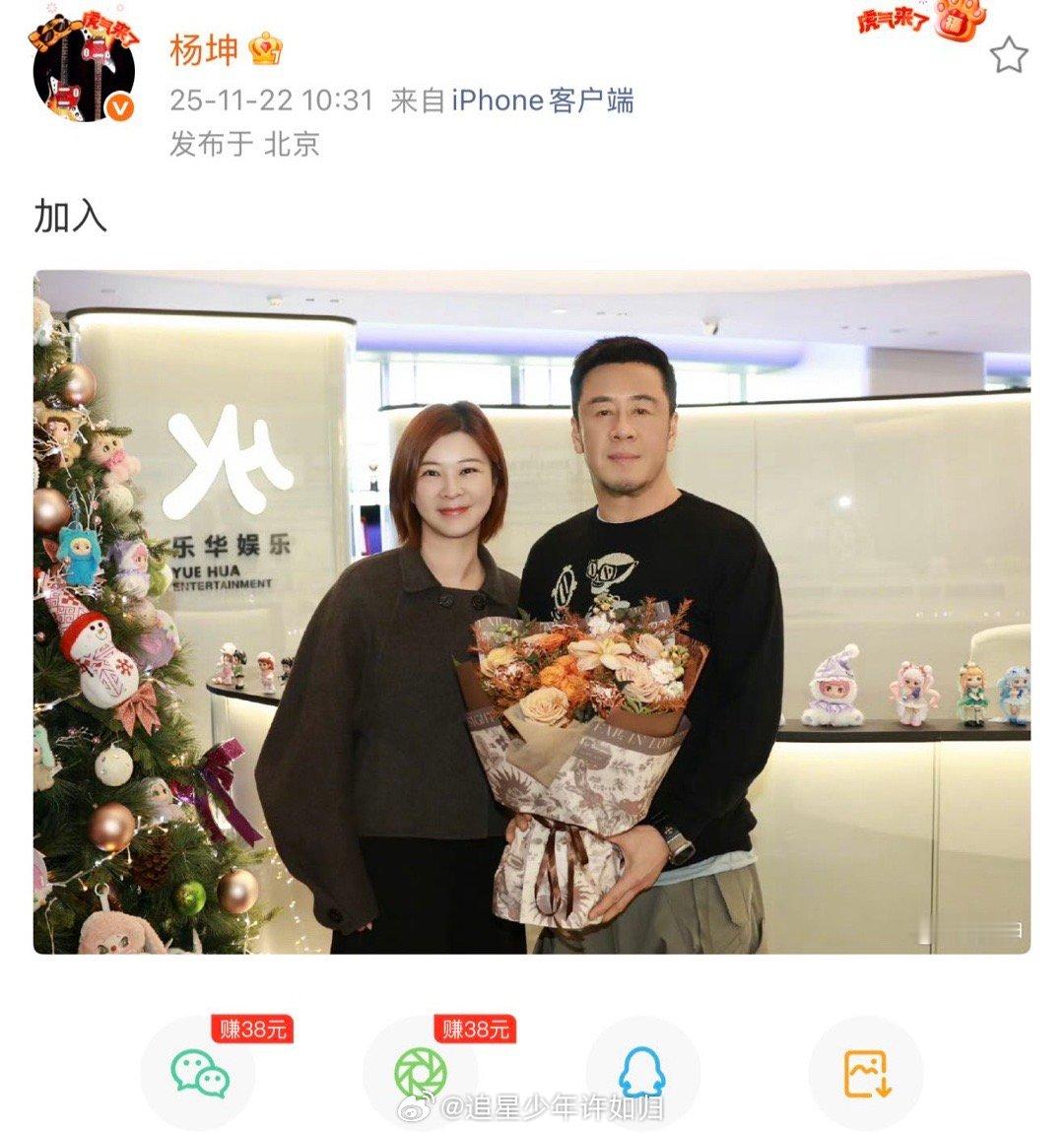 震撼!杨坤正式加入乐华家族,晒出与杜华合照官宣新身份!从实力唱将到乐华新成员,这