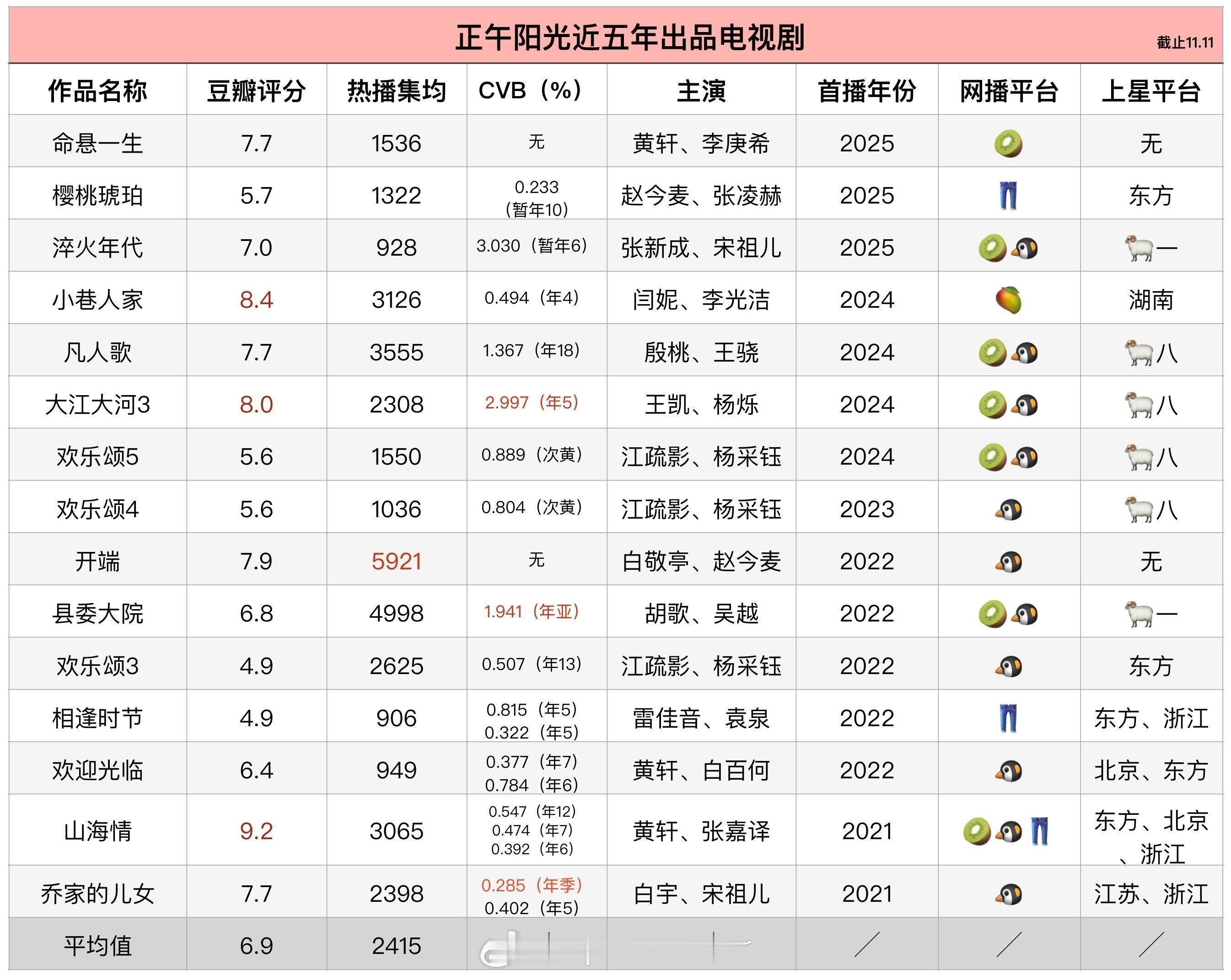 正午阳光今年播了三部剧《命悬一生》《樱桃琥珀》《淬火年代》,播出效果都挺未达预期。2026年即将推出两部大剧,都是羊妈黄金档。一部是杨紫、胡歌主演的《生命树》,一部是肖战、周雨彤主演的《谍报上不封顶》。很明显就是要提名三大奖的获奖之作。明年白玉兰有生命树,明年金鹰有小巷人家+生命树,明年飞天有小巷人家。谍报肯定在5月之后播出,评奖就是2027年的事情了。