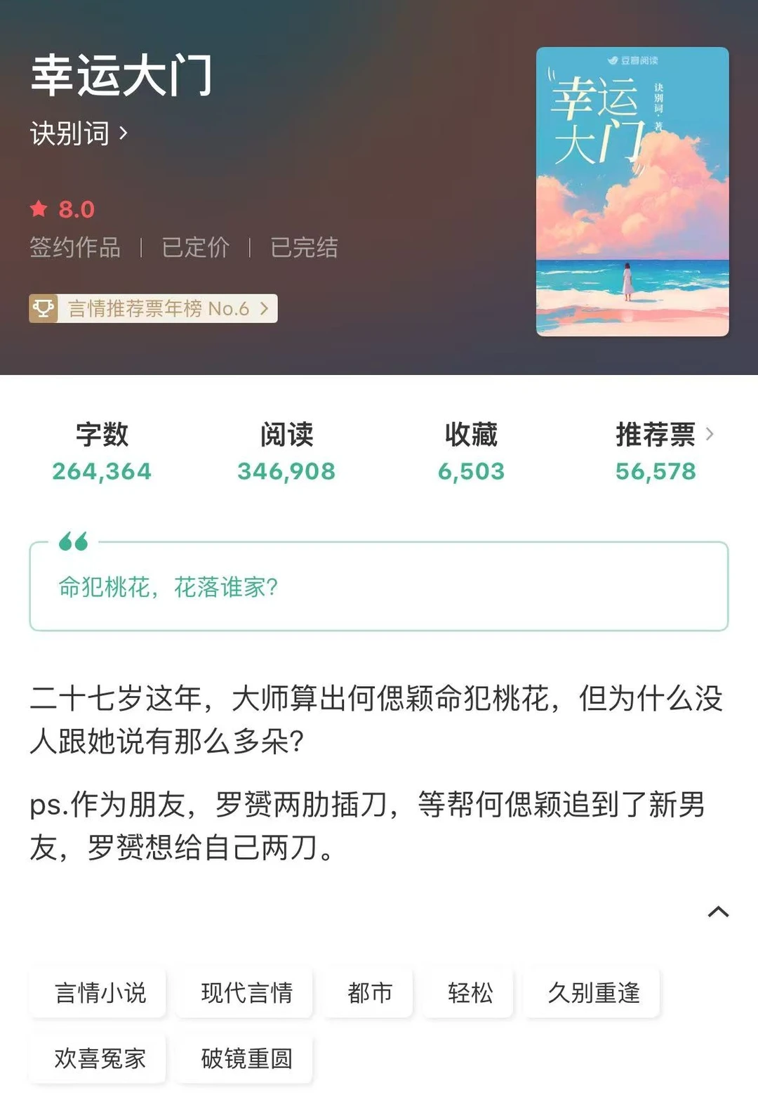 [桃子R]《幸运大门》,作者:诀别词