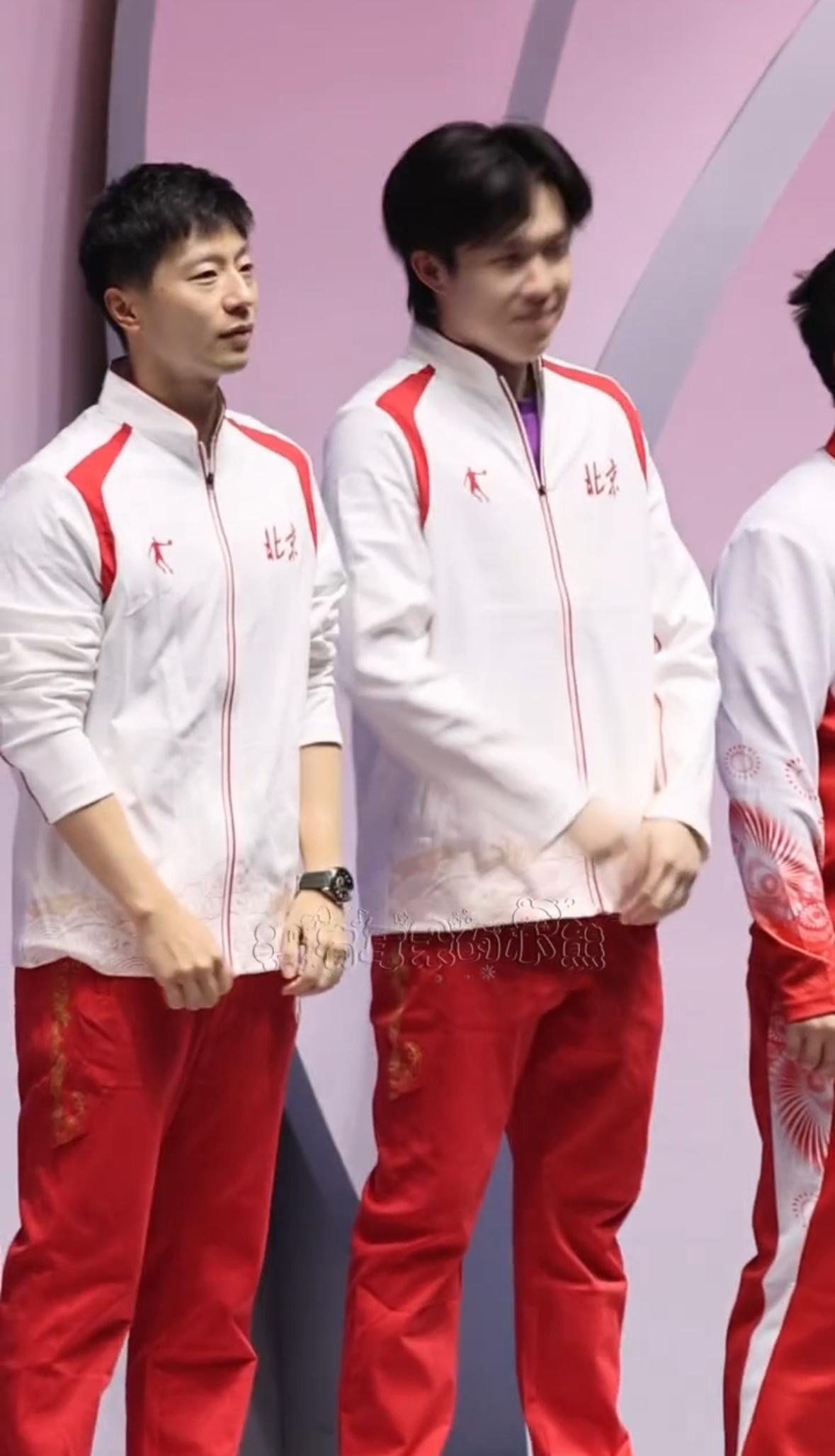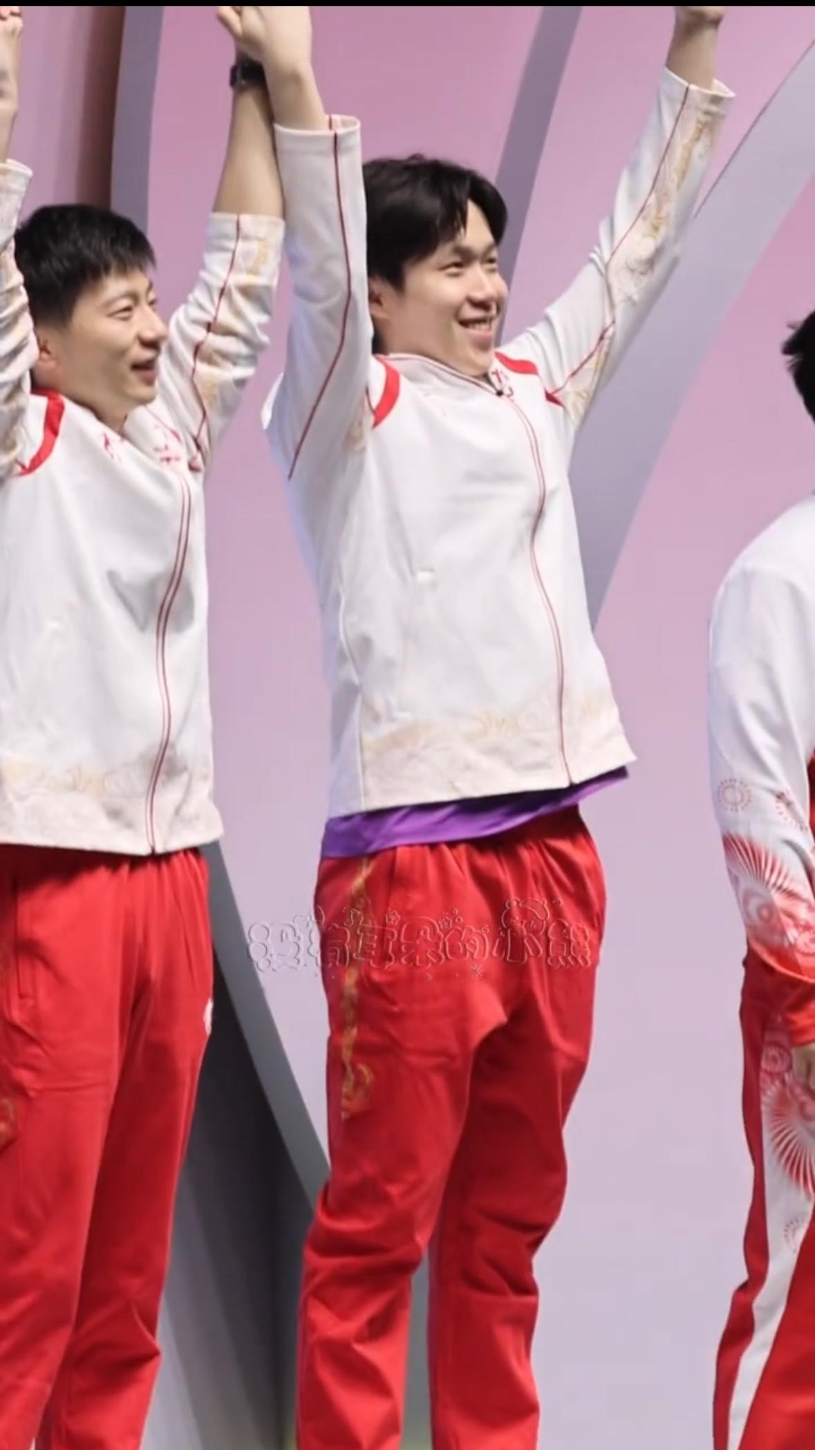 龙队也有可爱的一面,男团上台领奖竟然牵着队友的手,头哥可是跟着龙队长大的! 龙哥的胳膊又露出来了手表,看到闪耀的大手表,龙队相当有品味了! 王楚钦里面穿着紫色的秋衣,很可爱很开心的大头,这样的兄弟俩很开心了,这次真的赢的漂亮,没有遗憾了!