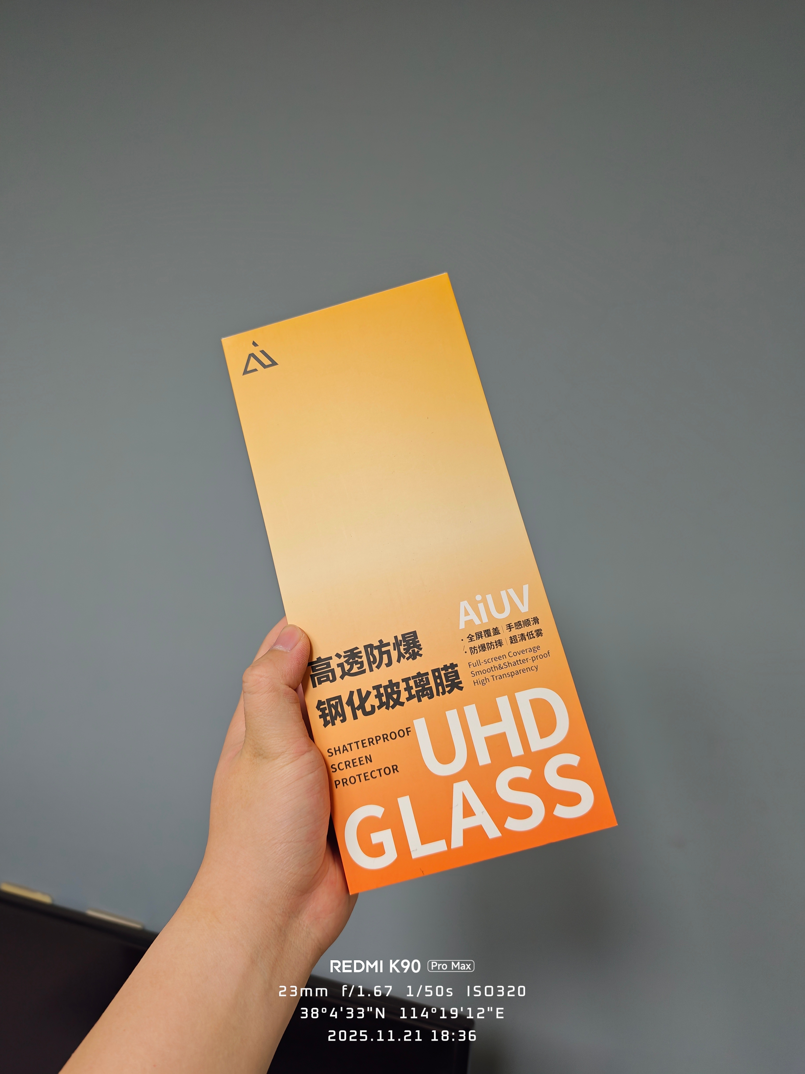 实名推荐一下 家的K90 Pro Max钢化膜,AR降反射、超窄边加持质感非常非常棒,也不影响超声波指纹解锁,还有除尘仓,贴膜这个事“有手就行”