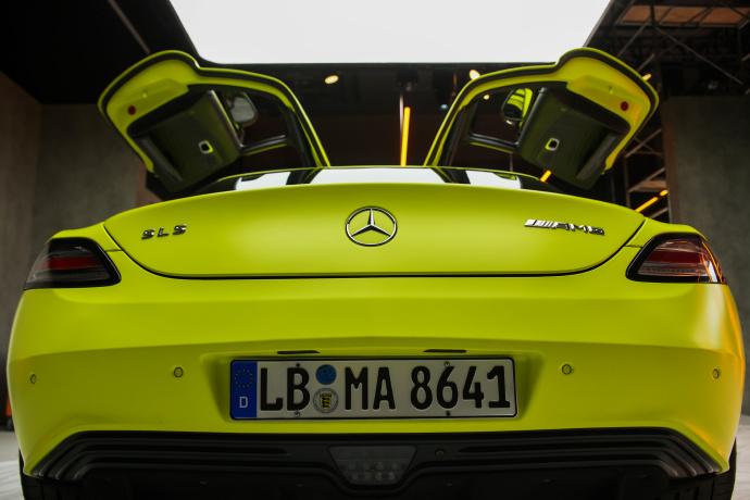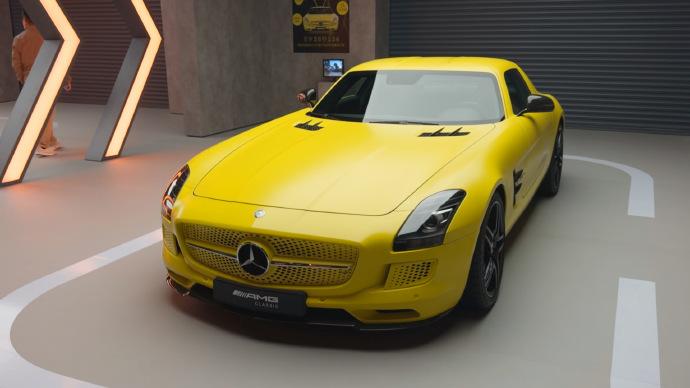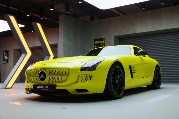 第一台刷纽北的纯电超跑 原来奔驰的电动化早有前瞻。 这次广州车展奔驰AMG带来一个硬货展示。 AMG GT XX概念车的鼻祖,首款纯电动跑车SLS Electric Drive,基于燃油版SLS AMG打造。 12年前的旗舰电跑车AMG,纽北7分56秒,当时纽北最速电车。 即便放在今天依然足够先锋。2013年推出时,就采用了4电机设计,751PS马力,1000牛米扭矩,3.9秒的零百加速,别说是在十二年前,哪怕放在今天也绝对是性能怪兽的存在。 据说当年要卖40多万欧,卖出了9辆,所以很稀有很孤傲。[熊吉]【来自懂车帝车友圈】