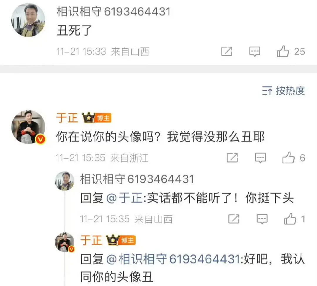 容貌焦虑的时候就去看于正的评论区吧