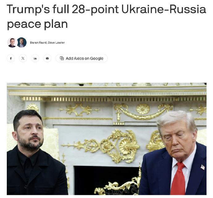 美国人给乌克兰下了最后通牒。11月21日,白宫明确告诉基辅:如果不在11月27日前签署那份"28点和平计划",就切断所有武器供应和情报支持。 这份由特朗普政府起草的计划,说白了就是逼着乌克兰认栽。它要求乌克兰在领土和军事上做出巨大让步,来换取美国那点虚无缥缈的安全保障。 具体来看,乌克兰得承认克里米亚和顿巴斯地区归俄罗斯所有,还要把军队规模从现在的八十多万人砍到六十万,连远程导弹都不能保留。更过分的是,要修改宪法承诺永不加入北约,这等于彻底断了乌克兰的后路。 经济上的条款也很苛刻。被冻结的一千亿美元俄罗斯资产要拿来搞重建,美国人张口就要抽走一半利润。欧洲还得再掏一千亿投资,美俄两家倒是能联手开发乌克兰的天然气和北极稀土。 政治上的条件更让人难以接受。协议生效后立即停火,但乌克兰必须在百日内举行选举,还要全面赦免战争罪行,连追责都不允许。所有这些都由特朗普领导的"和平委员会"监督执行,违约就要受制裁。 美国陆军部长德里斯科尔在基辅说得直白:"乌军处境不利,和平时机已到"。这话听着像是在关心,实则是威胁。自冲突爆发以来,美国已经提供了超过七百七十亿美元的军事援助,光是防空系统就支持了一百二十多亿。现在突然拿停援来施压,这算盘打得确实精明。 泽连斯基现在真是进退两难。公开场合他说要提出"替代方案",强调"不背叛国家尊严";私下里却承认面临"失去尊严或失去美国支持"的残酷选择。乌克兰驻联合国代表倒是划出了红线:不承认割地、不限制自卫权、不妥协国家认同。 但国内形势也不乐观。腐败丑闻持续发酵,执政党议员倒戈要求限制总统权力,这都削弱了乌克兰的谈判筹码。 俄罗斯这边,普京表面上说计划"可作谈判基础",但要求细节磋商。与此同时,俄军攻占了库皮扬斯克,威胁在其他战线复制战果,明显是在军事施压。 欧洲国家强烈反对这个计划。欧盟外交代表卡拉斯强调"任何计划需乌克兰和欧洲参与",拒绝接受损害乌克兰主权的方案。德法英领导人紧急联系泽连斯基,承诺维护乌克兰的自卫能力。他们担心,如果协议通过,欧洲将失去对俄乌事务的话语权,前期投入全都打了水漂。 就连美国内部也有分歧。有共和党参议员批评计划"过度偏袒俄罗斯",白宫只好宣称这是"动态文件,可修改"。 现在留给乌克兰的选择实在有限。如果签署协议,将丧失两成领土主权和战略防御能力,彻底沦为美俄交易的筹码。如果拒绝,美国断援后,乌军很难维持当前防线,可能加速溃败。 关键的时间节点就在11月27日前,泽连斯基必须在美俄高压下做出抉择。美方计划12月初在莫斯科完成最终签署,时间紧迫。 说到底,这个"28点计划"本质就是场地缘政治交易,牺牲乌克兰的核心利益来换取美国的战略止损。尽管欧洲奋力抵制,但乌克兰在战场上的劣势和美俄之间的默契,很可能迫使基辅在最后期限前妥协。如果这份协议真的签署,俄乌战争将以乌克兰主权被肢解告终,整个欧洲的安全秩序也将遭受重创。