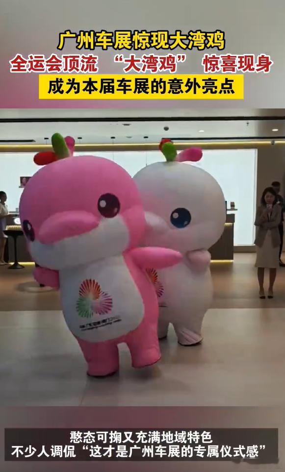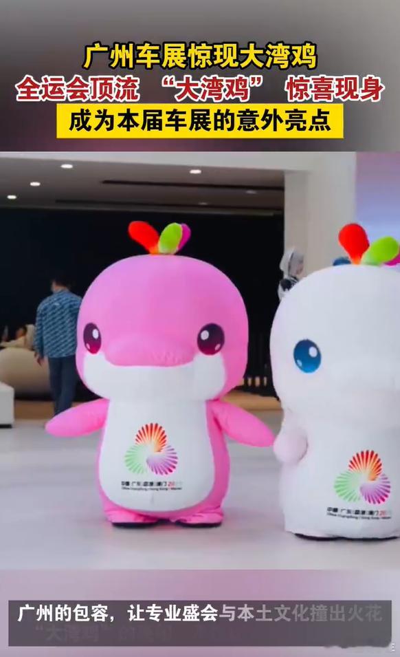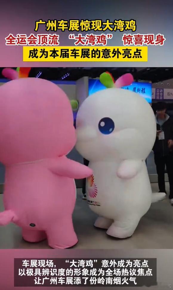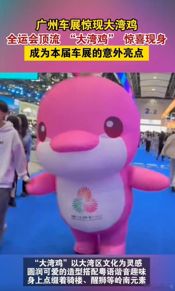 11月21日广州车展上,“大湾鸡”的亮相实现了民俗与科技的梦幻联动!这只现象级萌物的设计暗藏岭南密码:醒狮配色彰显地域特色,广绣元素传承非遗文化,浪花纹样呼应大湾区特质。圆润可爱的形象自带话题度,从全运会的即兴整活到车展的创意展示,它让地域文化在汽车展会中自然传播,成为最吸睛的文化符号。