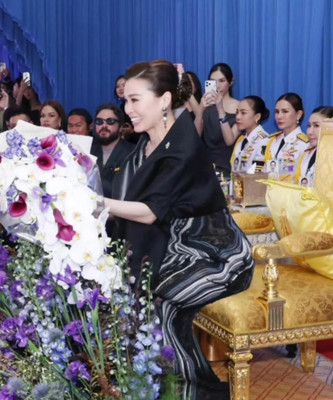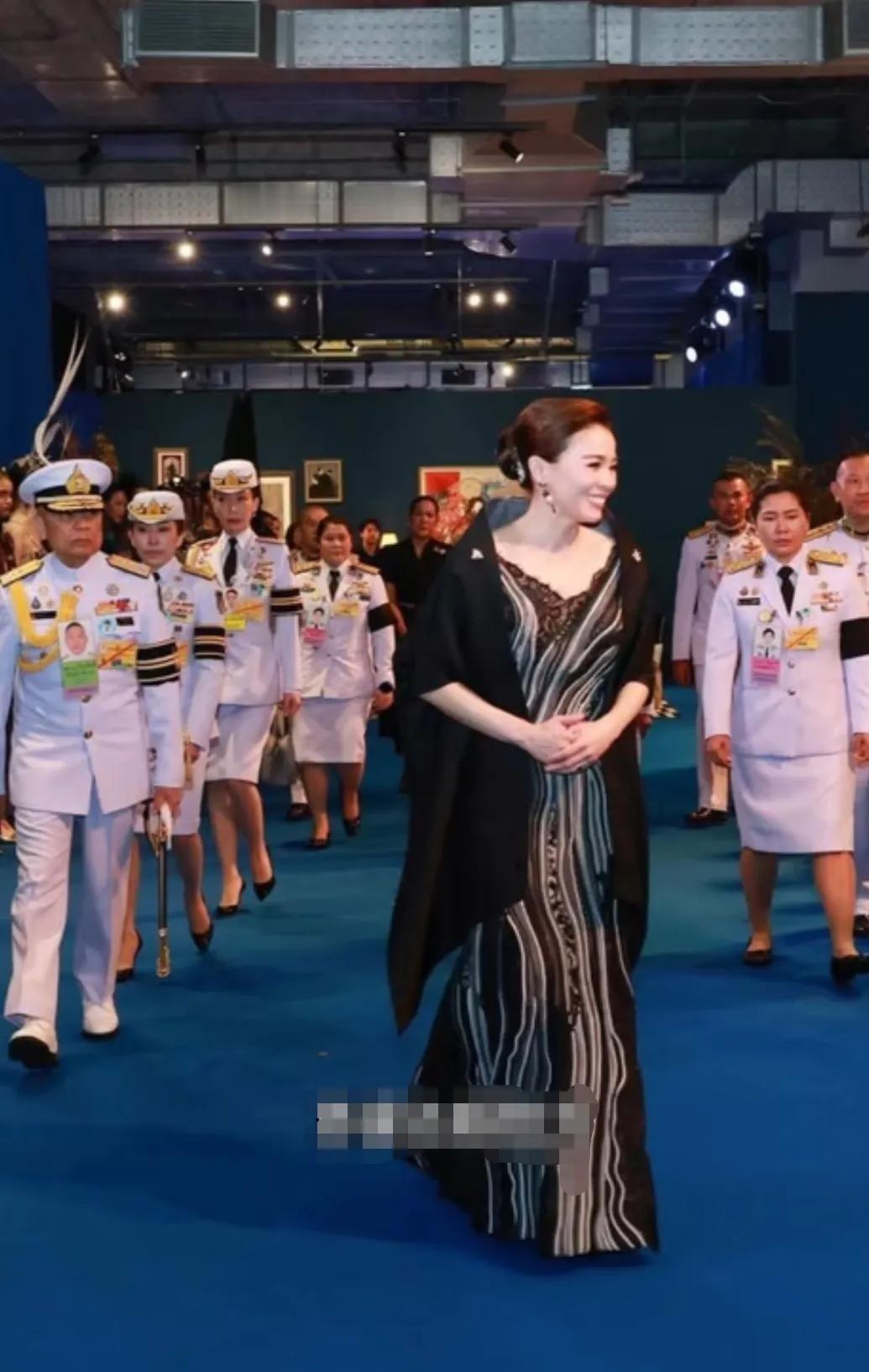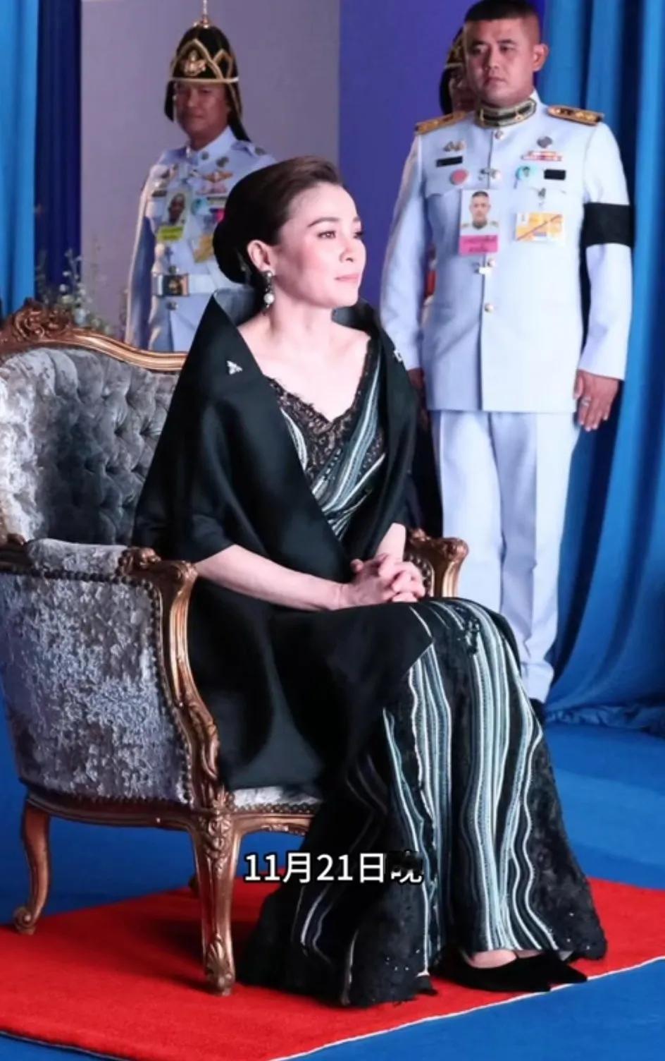 苏提达王后对时尚的把握简直出神入化了。 昨天在泰国一场时装秀中,苏提达王后惊艳亮相,一条黑白竖条纹的曳地长裙把本来就好的身材衬托得婀娜多姿,裙子外面是类似披肩似的黑色外搭,外搭设计感极强,宽松大气,手臂处的袖口还有精致的褶皱,精致秀气。 苏提达王后大大方方地坐在首位,气质如兰,不愧是王后,艳压全场! 因为诗丽吉王太后的去世,泰国按照国丧要求有一年的哀悼期,不管是从周围的卫兵还是群众,都是一身素服,杜绝了艳丽的色彩。 即使是这样的背景下,苏提达王后依然靠超高的时尚把握能力,穿出了非同一般的气势,真是绝了。