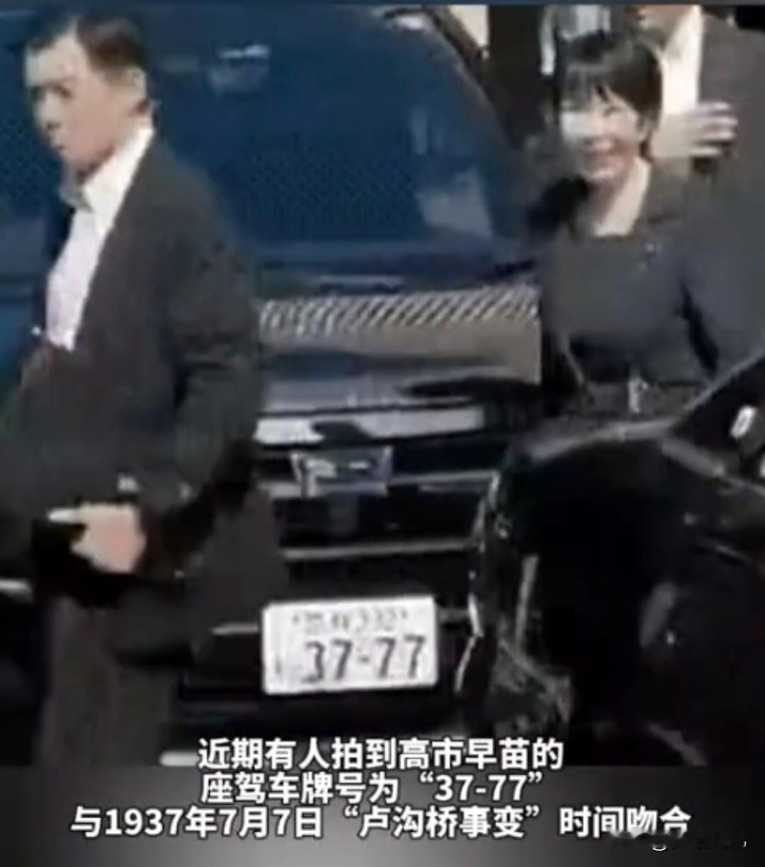 实在是太可恶了!高市早苗的车牌号是3777,有意还是无意? 勿忘国耻,1937年7月7日,是卢沟桥事变。 所以说,高市早苗,这是早有预谋,这是赤裸裸的挑衅,这是明目张胆的伤害中国人民的感情。她之前的私人汽车丰田JZA70 supra也是3777的车牌号,如今首相座驾非但不改,还是这般高调挑衅。 之前安倍还坐个编号是731的战机,而且提醒一下安倍的外公岸信介就是731的发起者和捐赠者。 上诉的这些挑衅可见,日本高层对我方可谓是恶意满满,其心可诛! 历史证明,鬼子野心勃勃,亡我之心一直存在,一定要高度警惕。愿祖国繁荣昌盛,恢复我大汉大唐的荣光,犯我华夏者,虽远必诛!