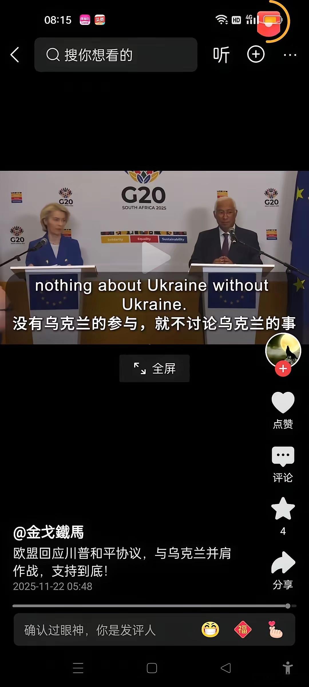 欧盟委员会主席冯德莱恩回应特朗普28点和平协议,没有乌克兰参与,就不讨论乌克兰的事,并称将与乌克兰并肩作战,支持到底。俄乌战争事关欧洲安全,欧洲不会任由美国指手画脚。