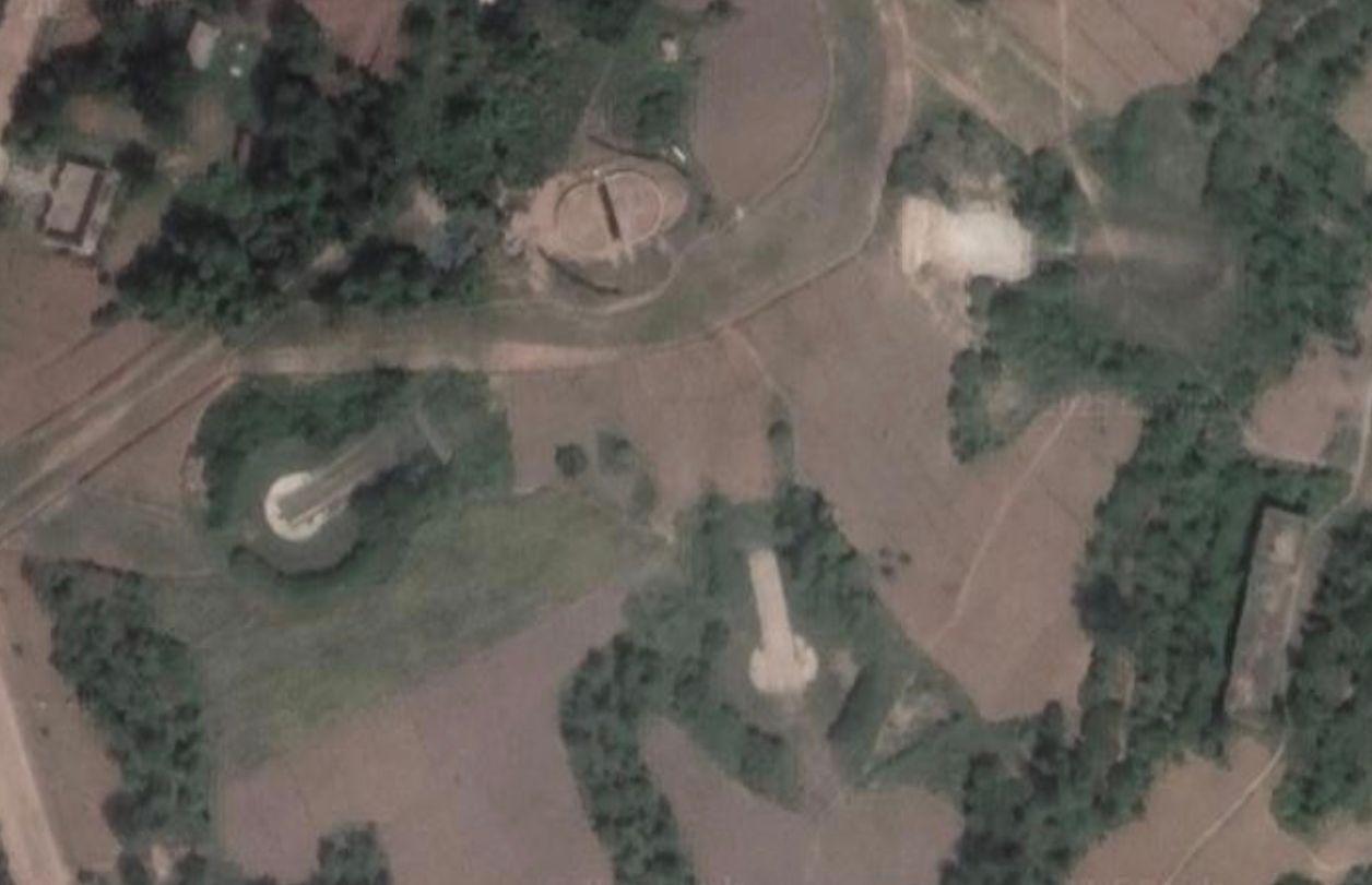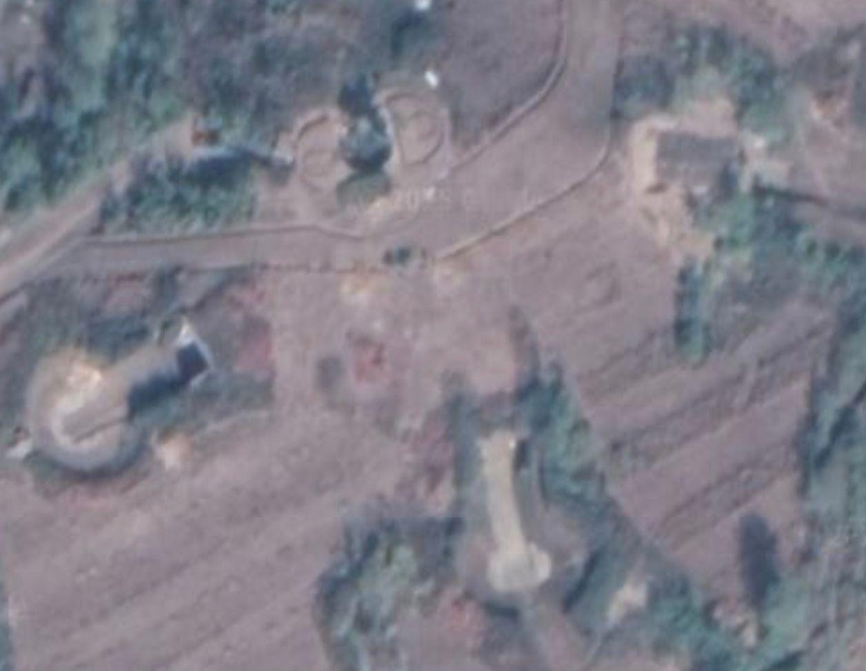 平壤的S-125“伯朝拉”防空导弹阵地全部修成了半地下工事,好像有加装升降机和混凝土盖子,盖子可以开合。看地面影子和外表,有非常明显的SR-125防空导弹系统的SNR-125“低击”制导雷达(图4)。这样的工事应对敌特袭扰和无人机攻击有奇效。S-125“伯朝拉”防空导弹即萨姆3防空导弹系统。