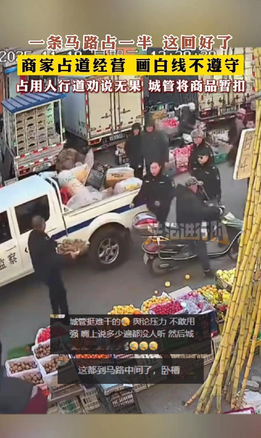 “干得漂亮!”11月18日,辽宁,多名商贩不顾城管劝阻,执意将货物摆到马路上售卖,人行道被完全占用,严重影响了正常的交通,多次劝说无果后,城管只能将货物搬上车暂扣!网友:以前不理解,现在非常支持! 11月18日中午,辽宁一条本该热闹又有序的街道上,传来了不少围观群众实打实的叫好声,甚至有人忍不住喊出“干得漂亮!”,那天正好是中午,赶上了接送孩子的晚高峰,街道上本来人就多,结果不少商贩直接把地上的白色经营界线当成了摆设。 好好的人行道,被他们的货架子、成堆的纸箱堆得满满当当,别说正常走路了,连个下脚的地方都没有。原本设计的双向两车道,硬生生被这些占道的摊位挤压成了单行道,交通一下子就乱了套。 接孩子的家长推着电动车,背着书包的小学生,还有拄着拐杖的老人,没路可走只能往机动车道上蹭。 马路上汽车喇叭声此起彼伏,商贩的吆喝声也没停,乱糟糟的一片。家长们推着车在车流夹缝里小心翼翼地穿梭,看着身边呼啸而过的汽车,心里都捏着一把汗,这要是哪个孩子不小心乱跑一下,或者车辆稍微蹭到一点,后果真不敢想。 这些商贩为了多赚点小钱,把大家的安全当儿戏,简直是把公摊的马路当成了自家后院,也太不应该了。 其实一开始,城管执法队员已经给足了面子,并没有上来就采取强硬措施。他们挨家挨户地找商贩讲道理,把占道经营的危害掰开揉碎了说,还下发了整改通知书,态度特别包容。那时候商贩们一个个都点头答应,手脚麻利地把东西往回搬,看着挺配合的样子。 可谁知道,这全是商贩们的“缓兵之计”,转头就变成了一场精明的“游击战”。执法人员刚离开几分钟,他们就把收起来的货物原封不动地搬了出来,有的甚至还变本加厉,把摊位摆得更靠马路中心了。有的商贩心里打着“法不责众”的算盘,看隔壁摊位摆了,觉得自己不摆就亏了;还有的把执法人员的宽容当成了好欺负,根本没把整改要求放在心上。 在他们眼里,什么市容秩序、什么交通隐患,都比不上眼前那点蝇头小利,这种“你进我退,你走我占”的把戏,彻底耗尽了执法人员的耐心。 等到大批执法队员再次折返现场,态度就完全不一样了。这一次没有了苦口婆心的劝导,取而代之的是雷厉风行的整治行动。 执法车直接开到了违规摊位前,执法人员亮出工具,针对那些屡教不改、严重越线的货物,依法进行暂扣。整个过程都有全程取证,搬运、装车的动作干净利落,一点都不拖泥带水。 这一动真格,刚才还一脸无所谓的商贩们瞬间慌了神。 之前那种“想怎么摆就怎么摆”的豪横劲儿全没了,有人急得在原地团团转,有人试图从执法人员手里抢回货物,还有人想上前阻拦,但这时候说什么都晚了,机会已经给过很多次,是他们自己亲手扔掉的。 最让人感慨的是围观群众的反应。要是搁以前,看到城管暂扣商贩货物,有些人可能还会觉得商贩做小买卖不容易,多少有点同情。 但这一次,围观的百姓不仅没人说闲话,反而清一色地叫好。大家心里都有一杆秤,做生意赚钱本来是好事,大伙儿都支持,但前提是不能影响别人的正常通行,更不能拿大家的安全当赌注。 这些商贩长期占道,把人行道堵死,让老人孩子只能冒着风险走机动车道,早就让周边居民怨声载道了,所以城管这次的整治行动,才赢得了这么多人的支持。 网友们的留言也说出了很多人的心声:“以前总觉得城管执法太严,现在才明白,不是城管想强硬,是有些商贩太不自觉。” “占道经营看着是小事,可影响的是大家的出行安全,就该好好管管!”那些被搬上执法车的货物,不仅是商贩违规占道的证据,更是给所有无视规则的人敲响了警钟。 画在地上的白线不是无用的油漆,规矩也不是用来摆设的,只有大家都遵守规则,才能让街道变通畅,让出行变安全。这次辽宁城管的硬气整治,确实干得漂亮,也让更多人明白,维护公共秩序,需要执法部门的坚守,更需要每个人对规则的敬畏。 (信息来源:《商贩占道经营划白线不遵守,多次劝说无果后城管将商品暂扣,人行道被商家完全占用无法行走,网友:没有城管,商家能把路堵上》中安在线)