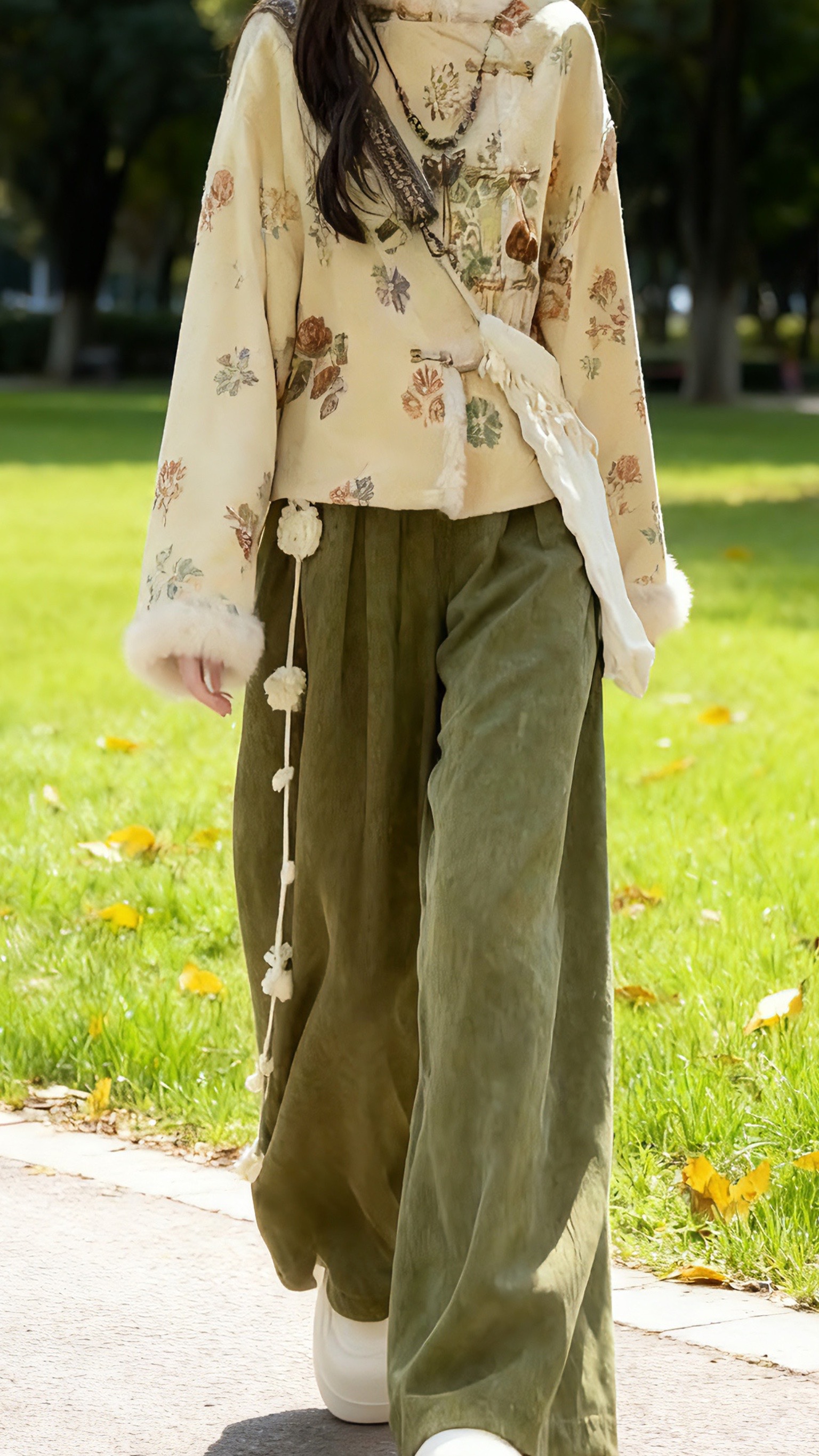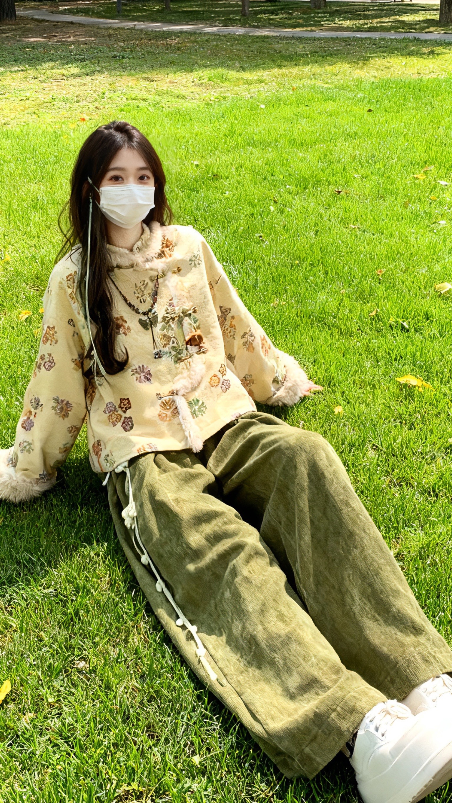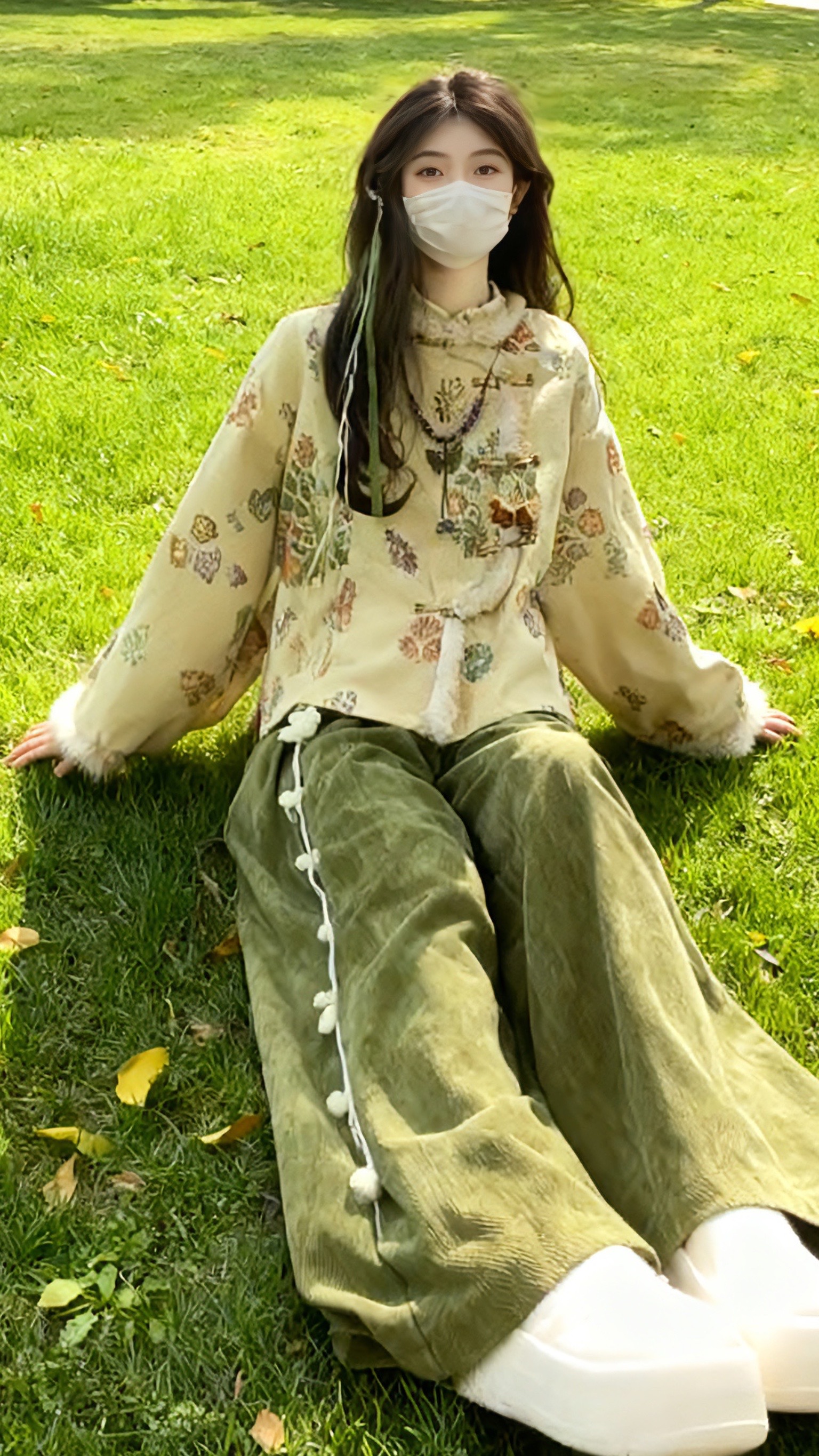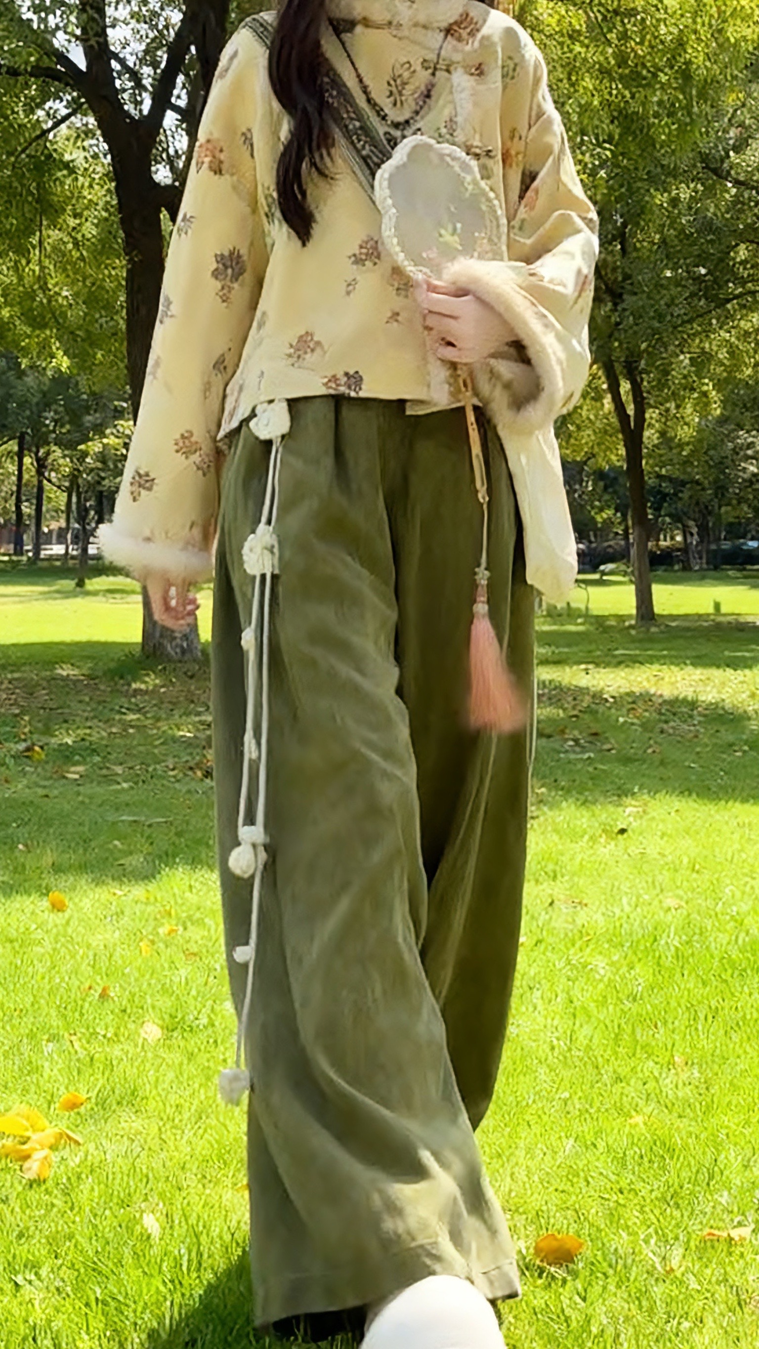 🍂 把桂花味的秋天穿在身上,毛绒边的国风上衣配灯芯绒裤,往草坪上一坐,连风都带着温柔的褶皱~街拍时尚穿搭 街拍小姐姐穿搭秀 棉麻复古文艺 文艺穿搭 复古穿搭