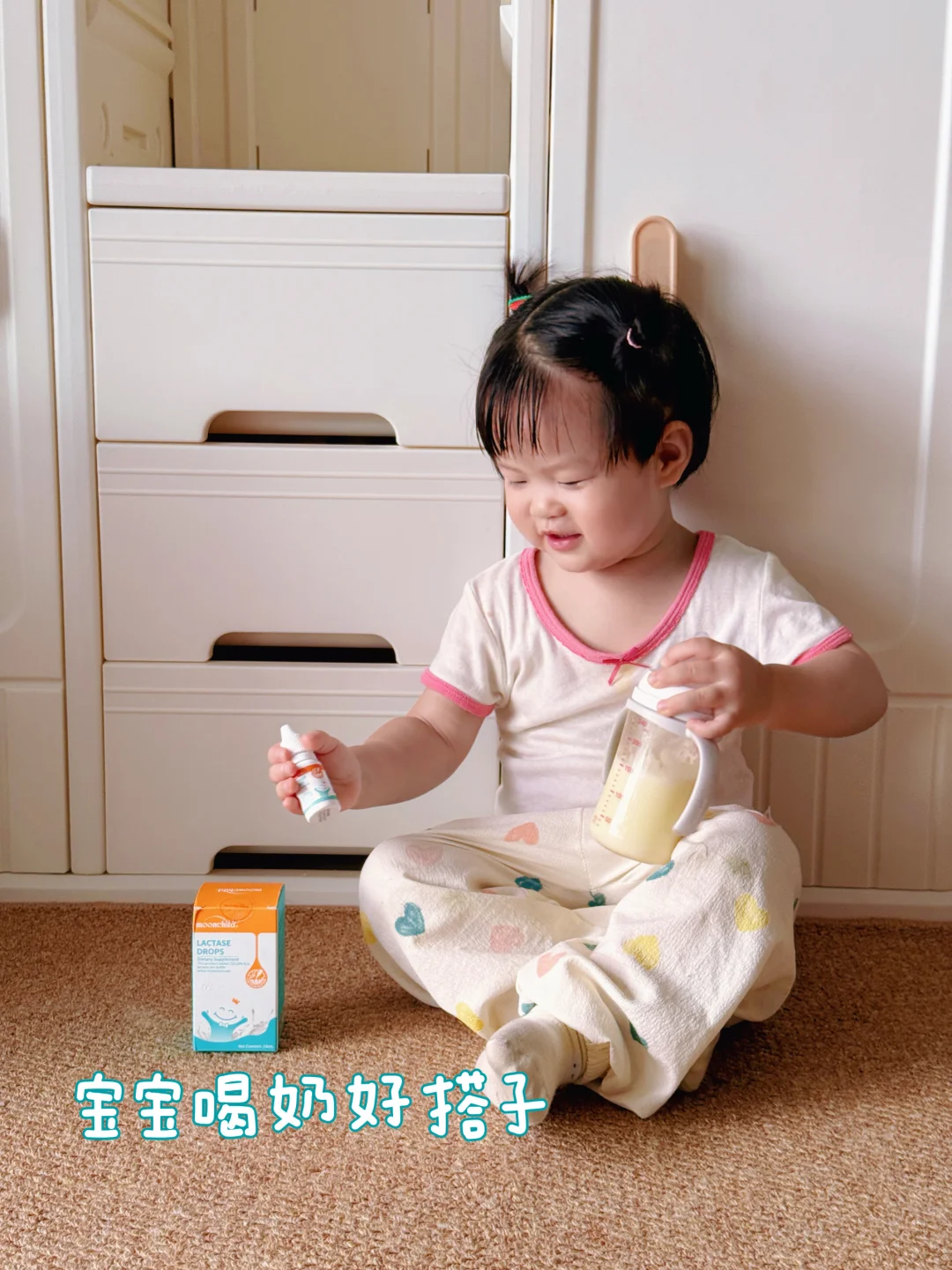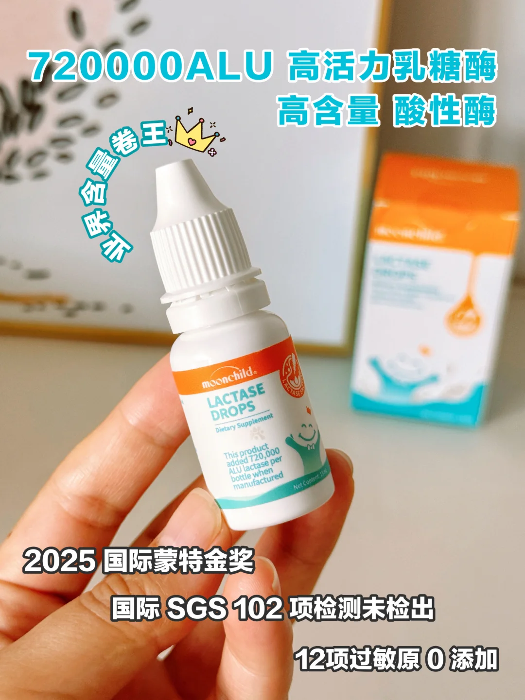 跟小区里的妈妈们聊天才知道,原来不少宝宝和我家妹妹一样被乳糖折磨过,也一样吃过乳糖酶。但是对乳糖酶褒贬不一,仔细了解完才知道,原来是没选对、没吃对😭 · 🌈 乳糖酶怎么吃?怎么保存? 🔸和奶粉一起冲泡,45℃水温,奶粉泡好后按照说明使用量滴进去就可以直接喝。母乳喂养的可以直接滴在neinei上或滴进宝宝嘴里 🔸未开封的乳糖酶常温保存或者放进冰箱冷藏;开封后需要冷藏,并且尽量在3个月内吃完 · 🌈 乳糖酶怎么选? ✅ 看性状:选择液体滴剂的,方便喂食 ✅ 看酶活力值:选择酶活力值高的,效率也高 ✅ 看酶PH属性:选择酸性的,更适合肠道环境 ✅ 看配料表:选择配料表干净的,无多余添加以及过敏原的 ⚠ 闲聊中不少妈妈要么没选对,要么喂养、保存不当,导致乳糖酶活性打折扣,当然吃了=白吃😂 具体攻略都在图上,妈妈们可以看看! · 我家宝宝之前吃奶闹腾,真的是伤透了脑子,后面在母婴室被其他妈妈安利了月宝乳糖酶,回家做功课发现,它还是年糕妈妈推荐的呢,果断入手。 每瓶720000ALU高活力乳糖酶,业界含量卷王👑,成分也很干净,只有乳糖酶、水和甘油,不含香精、防腐剂,12项无过敏原检测已通过,小月龄宝宝也能放心用!喂养也很方便,泡好奶后直接按量滴进去(每50ml奶滴1滴),直接喝不用等,超方便! 滴管设计方便控量,干净卫生,用完放冰箱冷藏,方便省心!