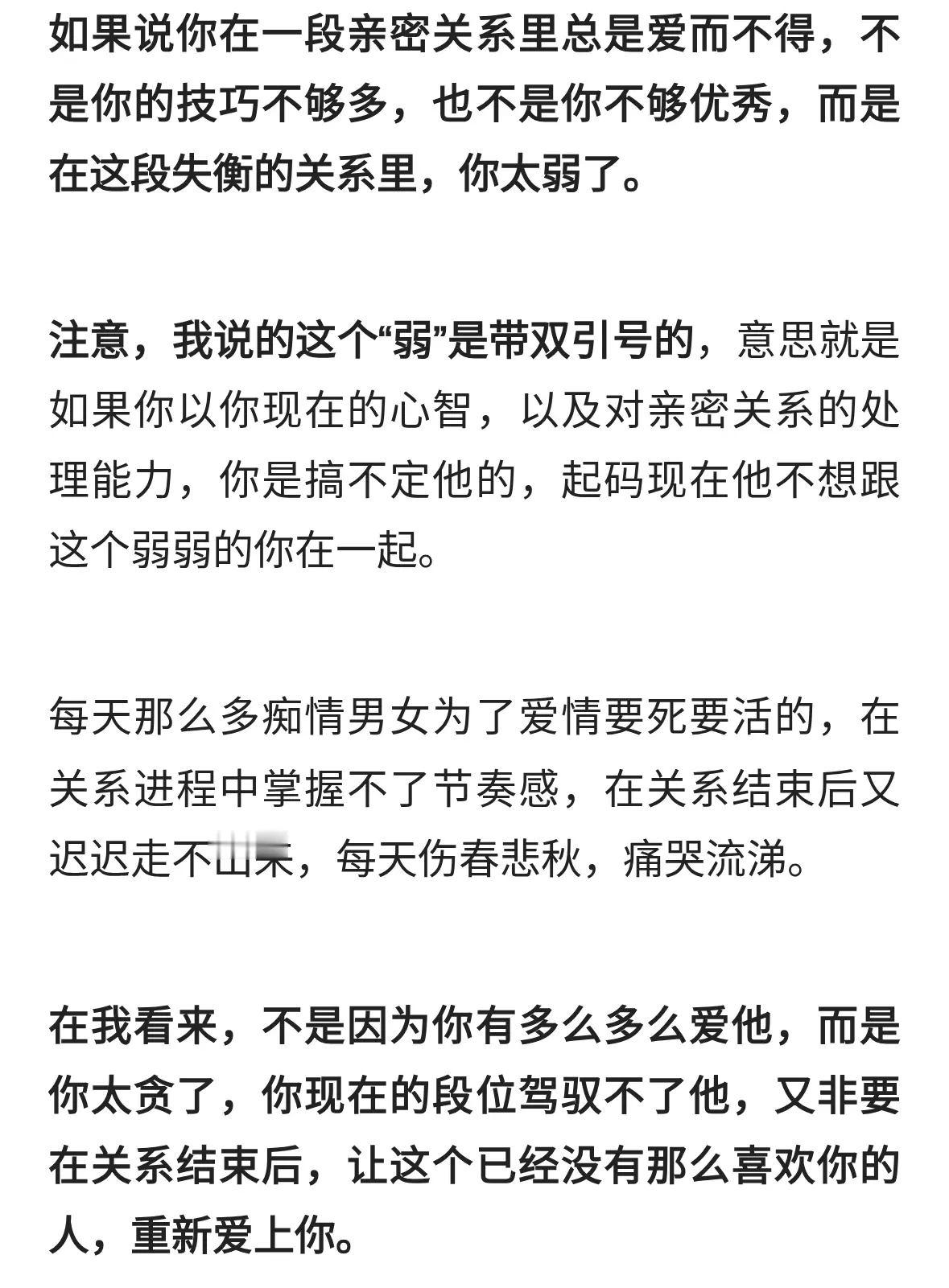 所有亲密关系中的“爱而不得”,本质都是“你太弱了”