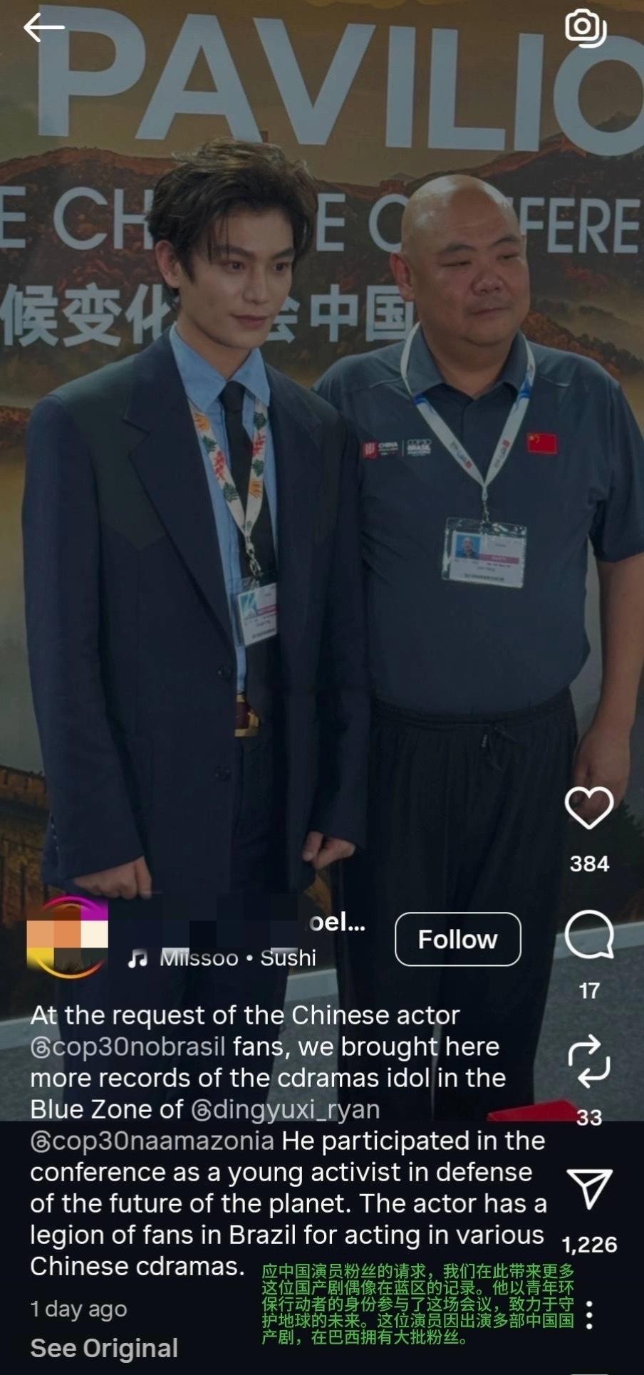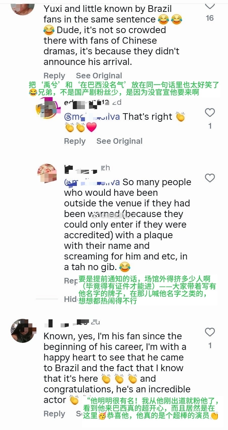 丁禹兮在巴西很火诶,巴西很多人喜欢他,国产剧火到地球另一端啦!