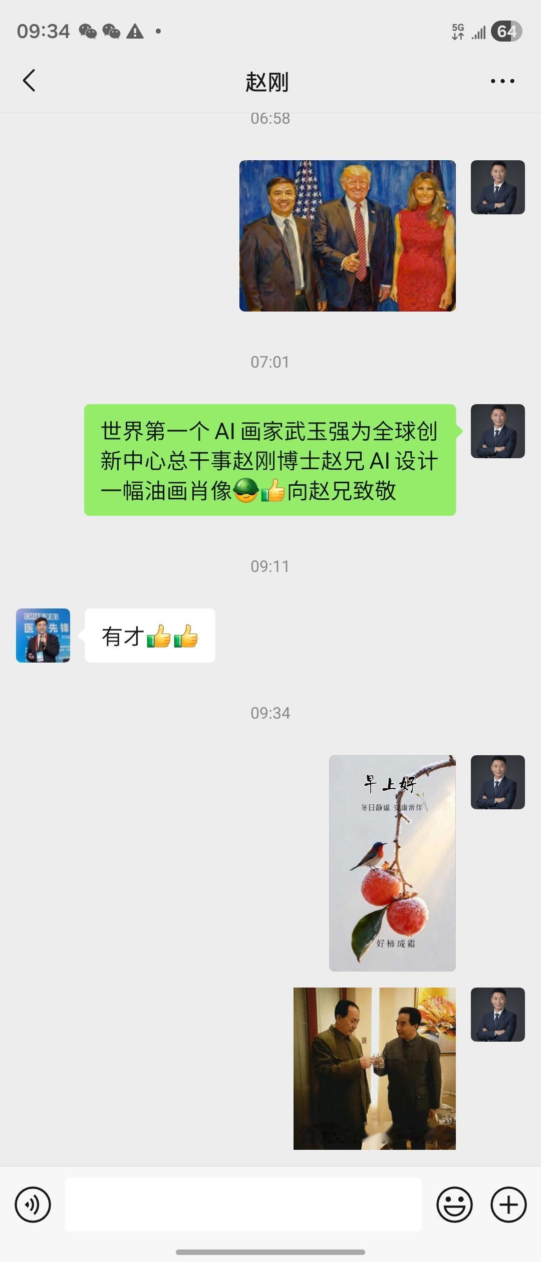世界第一个AI画家武玉强为全球创新中心总干事赵刚博士赵兄AI设计一幅油画肖像[绿
