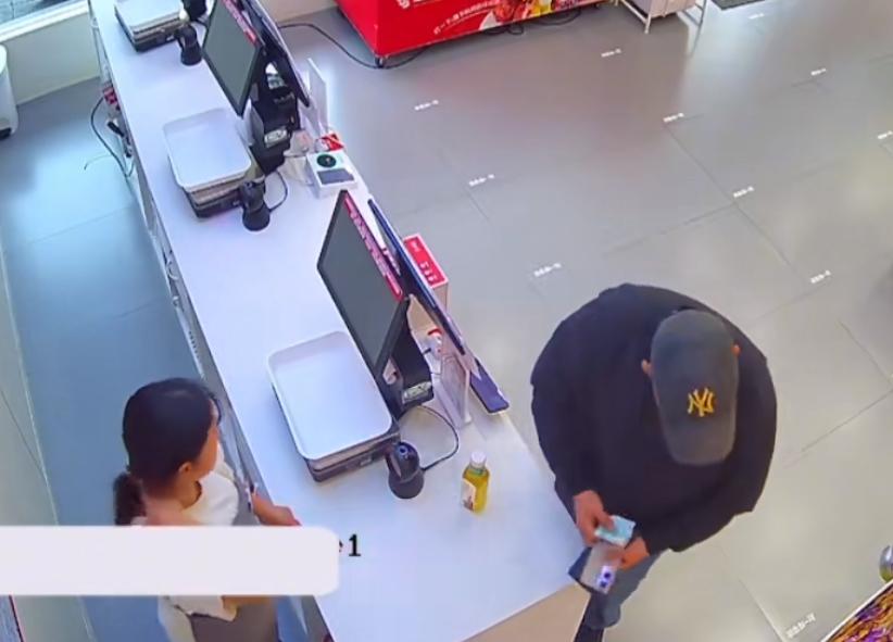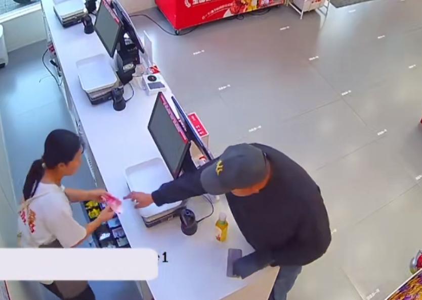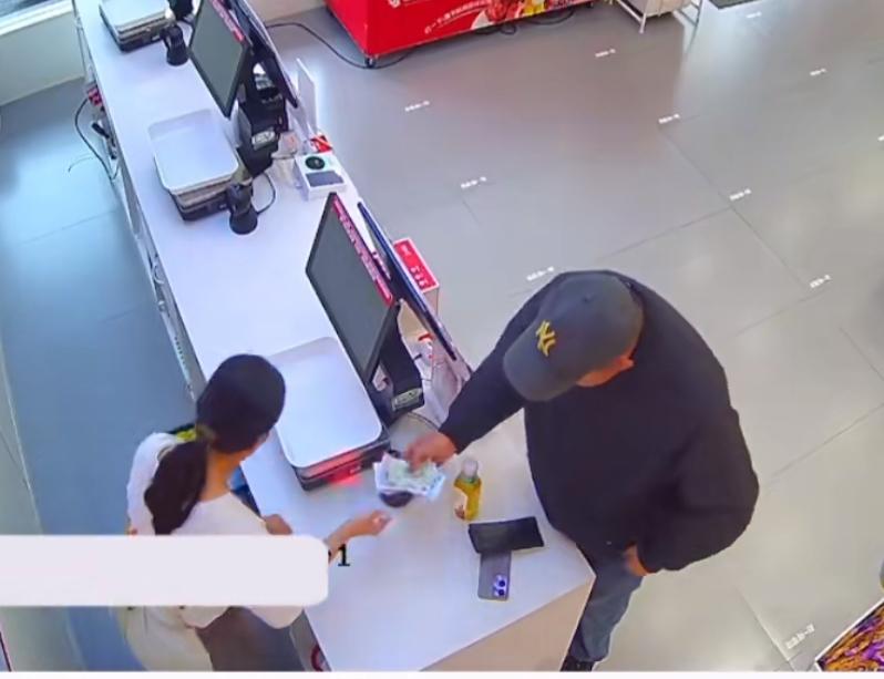 监控拍下零食店顾客的诈骗伎俩,收银员倒大霉,一天白干了。这个戴着帽子的中年男,估计是故意这样打扮,不让监控拍到脸。给100块让收银员找零,就买一瓶饮料,突然拿出硬币,说有零钱,从收银员手里拿回100块,收银员另一只手里的零钱也被他顺势拿到,男子收钱后假装还要买啥,转移收银员注意力。