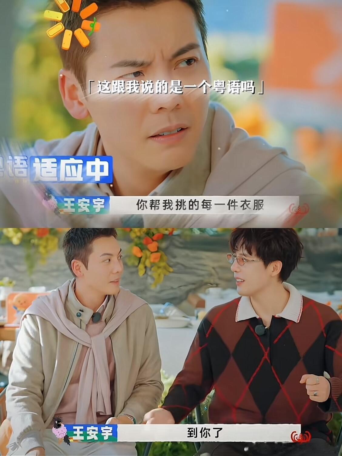 我没看错吧,王安宇在教广东人陈伟霆说粤语,真的笑鼠我了!王安宇说粤语说着说着成功带偏陈伟霆,陈伟霆都快怀疑自己说的是不是粤语了哈哈哈哈哈