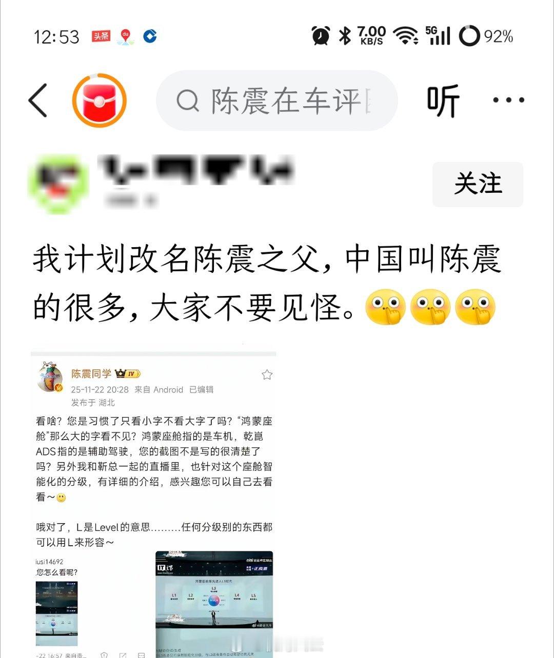 陈震得罪的网友还是多啊,不过这网友要真改名叫“陈震之父”,我估计陈震不会一忍再忍