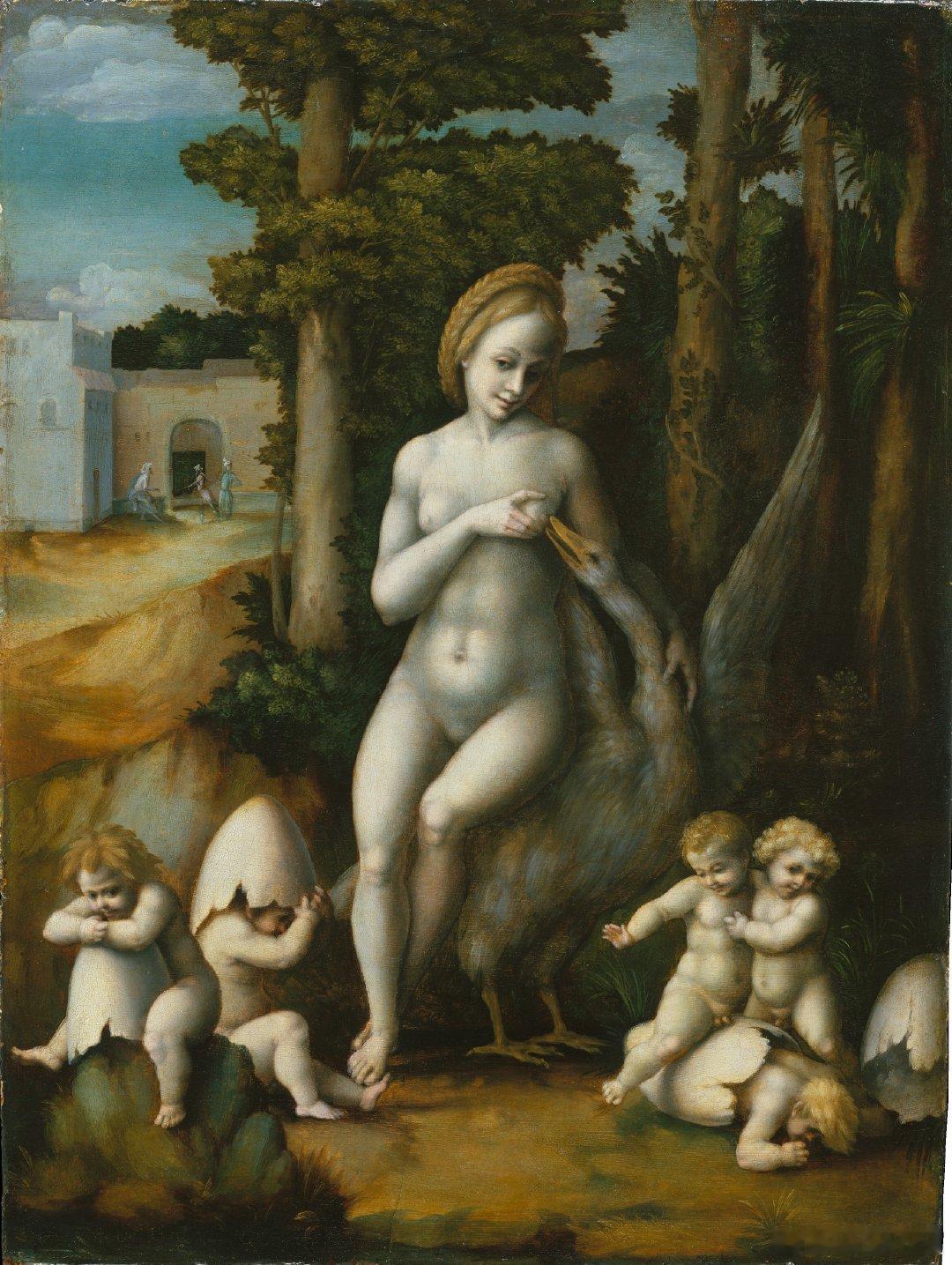 意大利画家Francesco Bacchiacca(1494–1557)的作品《丽达与天鹅》。