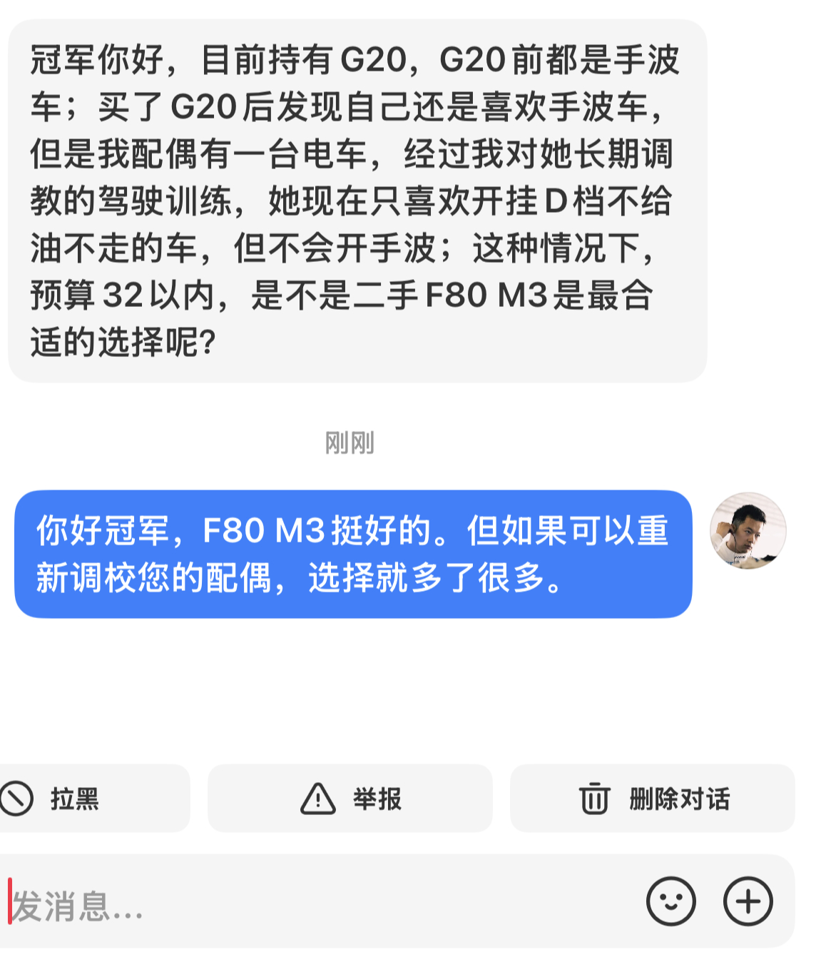 也可以考虑重新调校您的配偶你好冠军,F80M3挺好的。但如果可以重新调校您的配