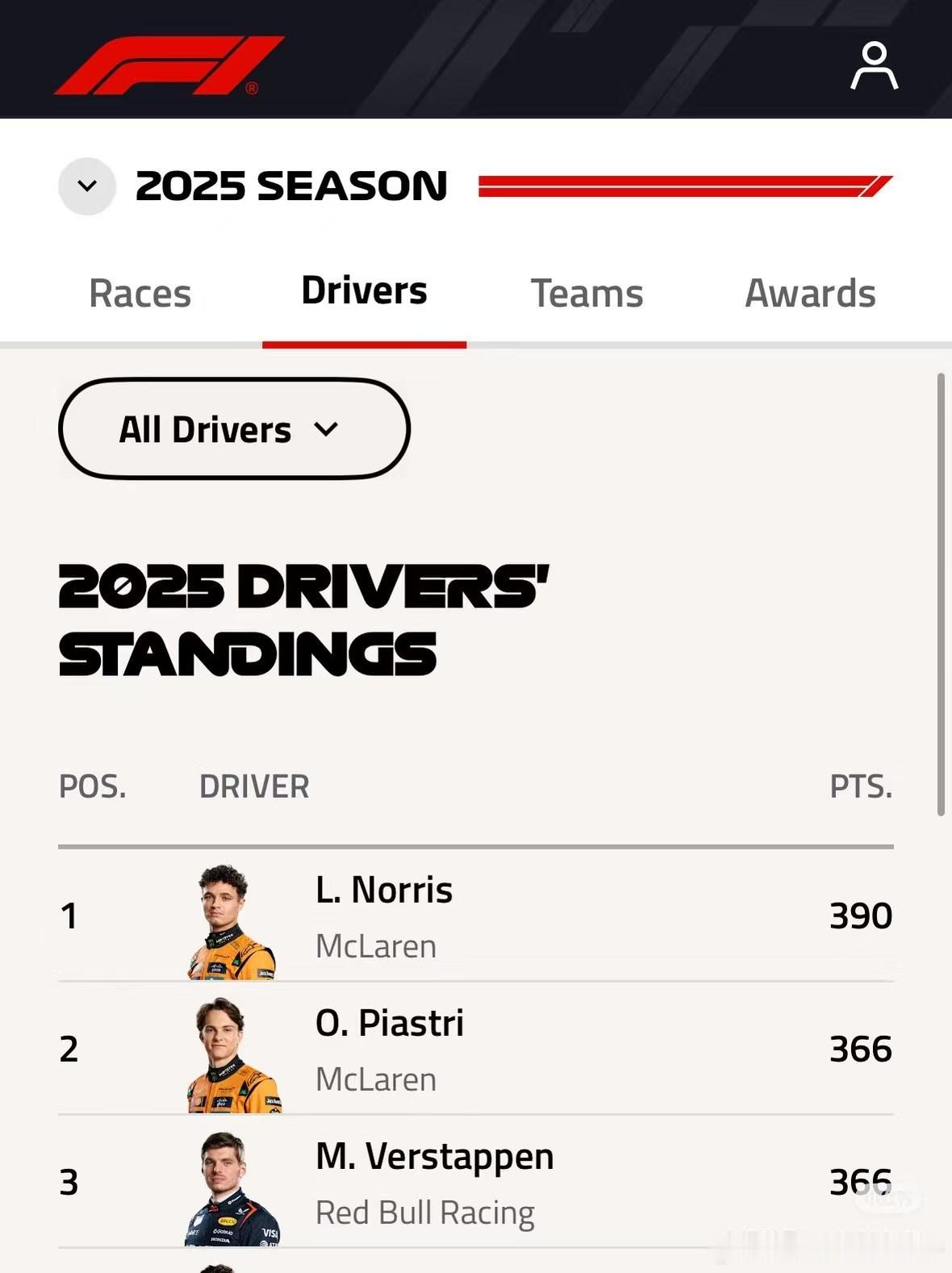 FIA那边还没发最终文件,但是F1官网已经把车手积分榜更新成了迈凯伦双车DSQ之