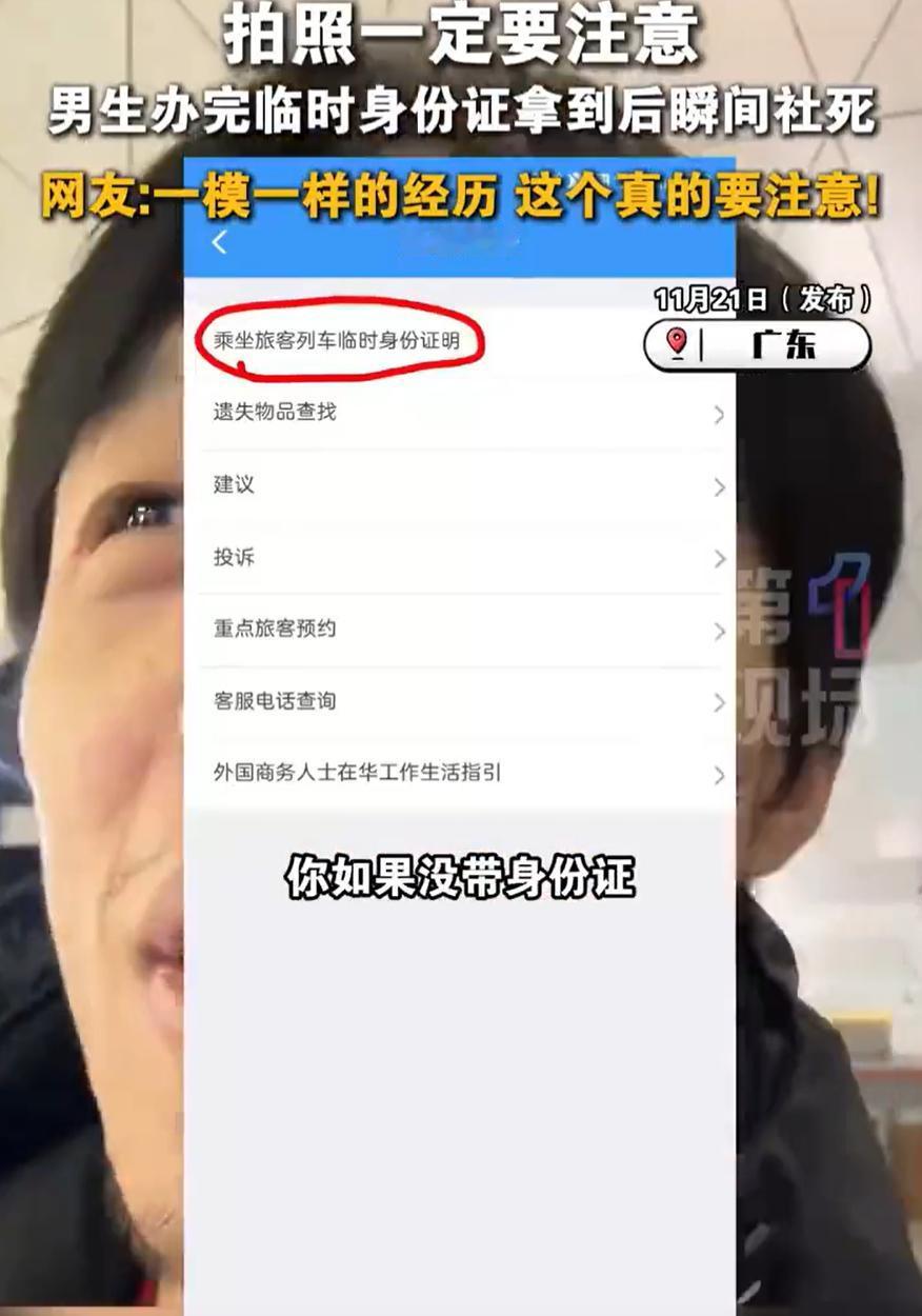 “当场社死了!”广东,一男子出差时发现身份证不见了,就用手机在网上办理临时身份证