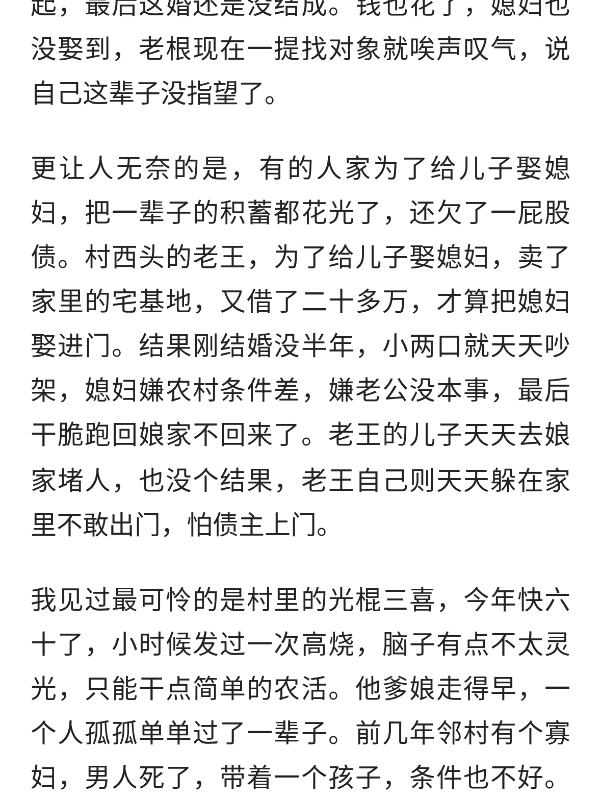 农村光棍太多,有的连傻子都要,有钱没钱,找个媳妇儿咋就这么难