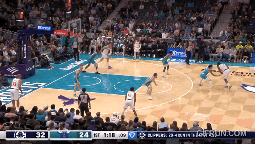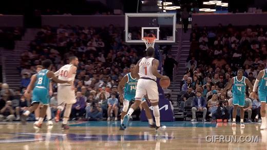还是哈登的55分。图1,开场就是3+1。小米勒老老实实锁哈登左手,哈登找掩护,右手突,黄蜂还傻呵呵地沉退+挤过掩护,哈登起手三分。“这可是你让我投的?”图2,反击,对面平步站位,哈登又是右手,又吃对面沉退,中投:“这还是你让我投的。”图3,哈登真硬桥硬马干的,突破三球这一下,但这一下也有心机:哈登右手突一步后,转瞬即逝的一个急停,三球重心退一步,稳住,被哈登时间差突破身位扛了过去。这一下太挫败了,所以三球第一反应是四顾,“啥?!”——三球自己就是步伐节奏小天才,还是被哈登虚虚实实弄懵了。图4,下半场的一球,守转攻,迪亚巴特换防;哈登原地搓球,但这变向只做了一半,拉球直接变收球撤步,迪亚巴特被哄过,小桥也被玩弄:哈登一串二,还打了个3+1。图5,然后又是玩弄小米勒:哈登接球撤步面筐,小米勒略调整步伐,坚持锁哈登左手,哈登有始有终,又是右手突破小米勒,在迪亚巴特到来前抛射。“你老让出我右边干嘛,真以为我不会右手啊?”
