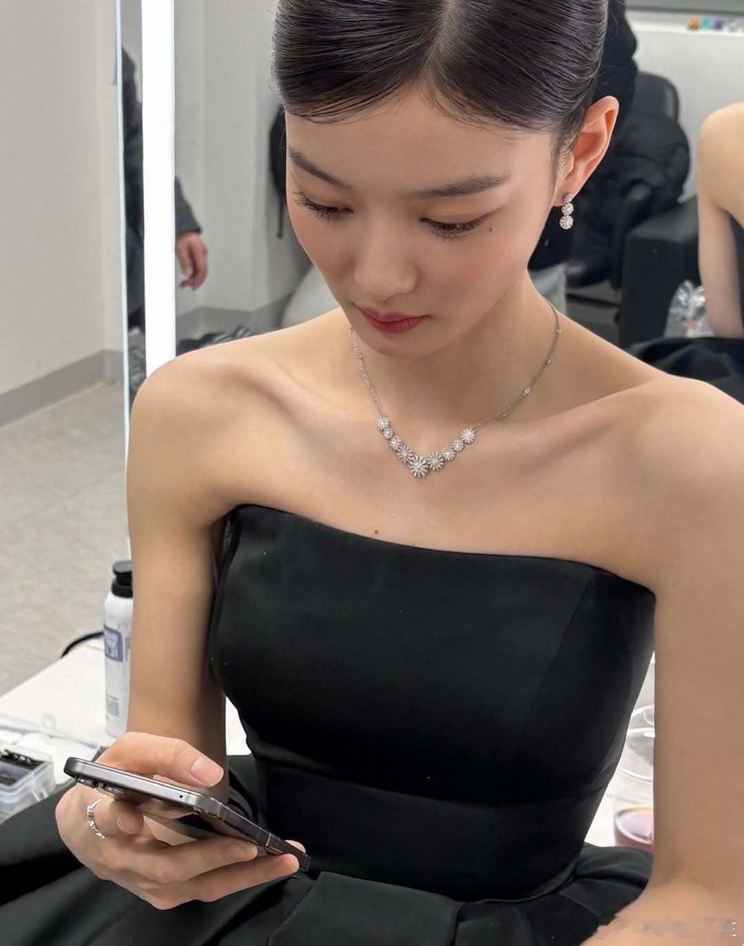 刘亦菲把死亡玫粉穿出了定制款的感觉,这种颜色普通人穿上分分钟黑三度,她居然能穿出