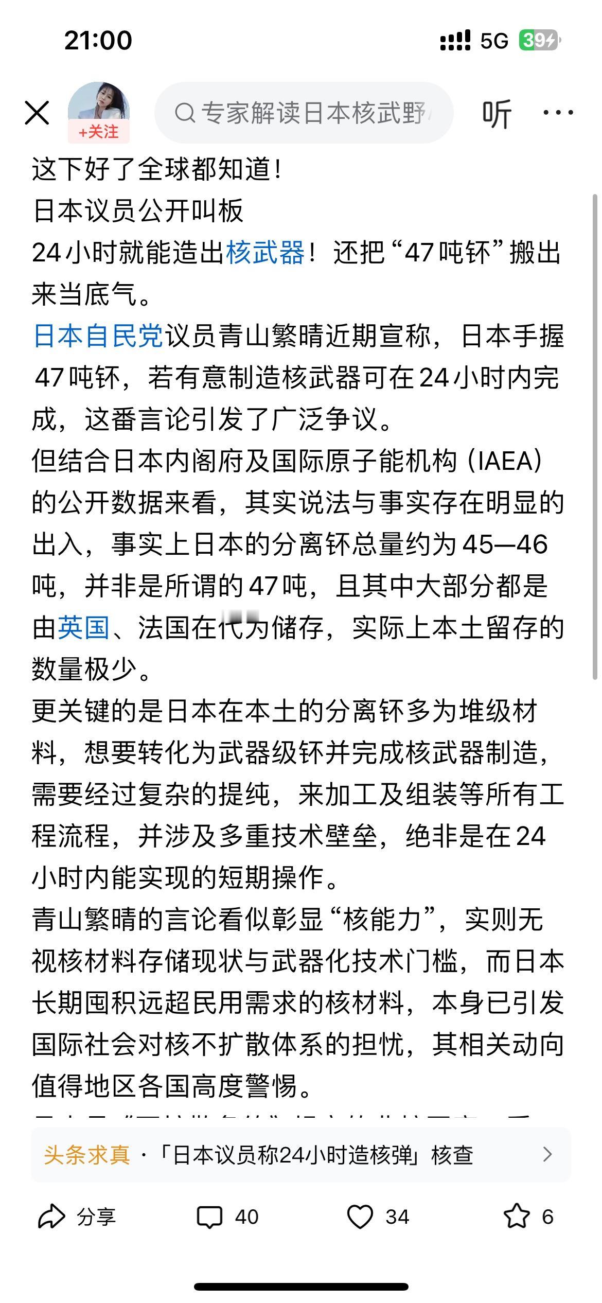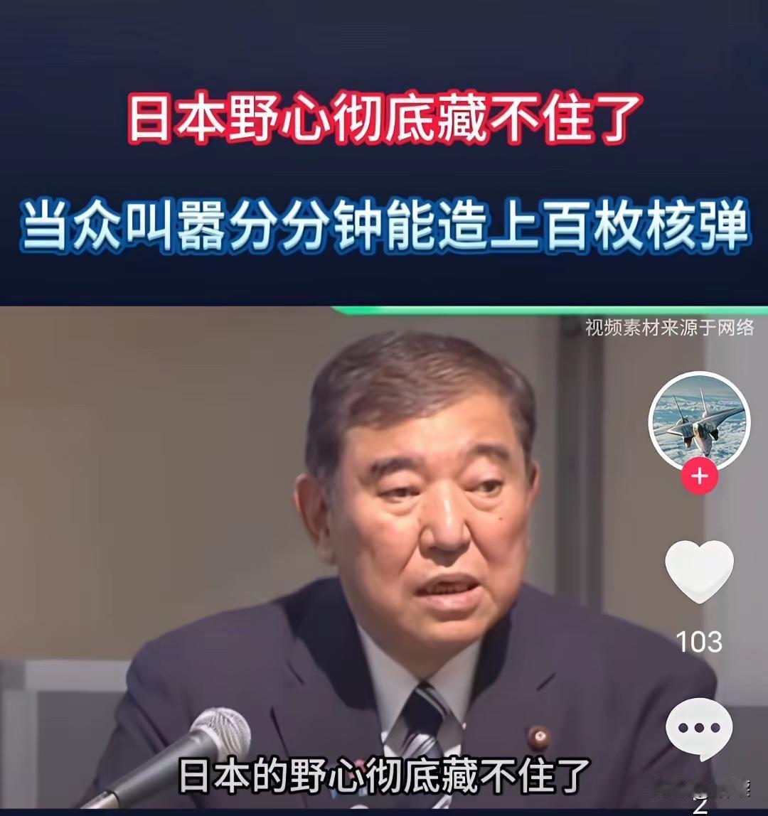 不是小看日本议员政客吹NB的,日本能在24小时内造出核武器,分分钟钟就能造上百枚核弹。如果日本有这造核武器的实力,你看他“美爹”收拾他不?他“美爹”要不把他打出“屎”来,这事不算完! 核武器作为日本可以彻底摆脱他“美爹”控制的终极武器,日本能分分钟钟的造出来,他还等什么!赶紧造啊!你看他“美爹”怎么收拾他!他“美爹”比任何人都怕日本拥有核武器,毕竟往日本投的两枚原子弹,就是他“美爹”投的! 他“美爹”可以允许日本拥有除核武器外的任何武器,但是日本想拥有核武器,日本是痴心妄想。 核武器,只能他“美爹”自己有,但是日本想自己有,这绝对不符合他“美爹”的根本利益!这位日本政客是“吹NB不打草稿”,想的真多!