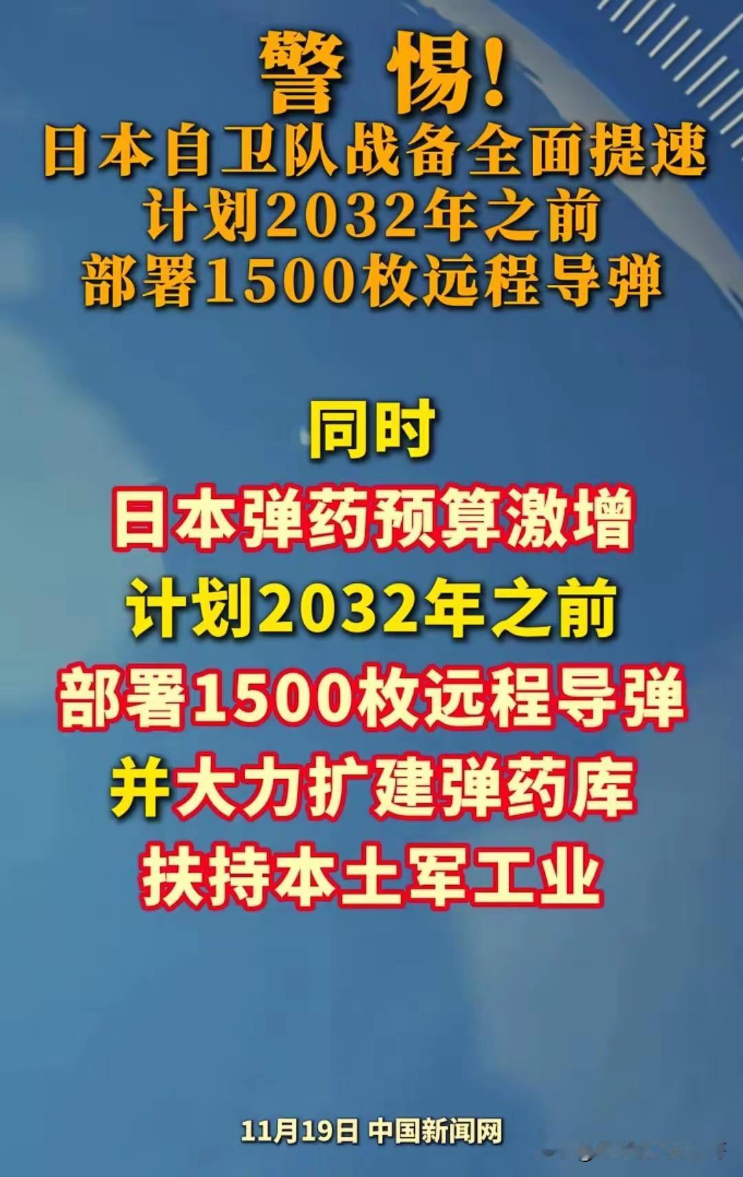 中国反应这么猛,不是没原因。 日本这几年军费年年涨,2023到2027五年计划43万亿日元,平均每年8万亿以上,2025财年申请8.5万亿,实际批下来可能更高。这些钱干嘛?买Tomahawk巡航导弹400枚,射程1600公里,能打到大陆沿海;改进12式导弹,部署超过1000枚;建卫星星座监控导弹动向;新设宇宙作战团;海自舰队大改组,护卫舰队群从4个变5个,加潜艇和扫雷部队。出云号改装继续,2025年还拨钱加F-35B垂直起降战斗机。这哪是专守防卫,分明是进攻性力量。 我们本来想等到2049年差不多建国一百周年,或者说是建军100年就是到2027年,到时候差不多,再收复台湾,或者说是把周边的所有障碍清理干净,但现在的话已经时不待我的,你像日本这几年国防力量,国防支出,国防预算大幅增加,还购买了大量的远程导弹,对中国的威胁也是日益增加,我们有的时候不得不提前先发制人,因为兵者,国之大事也,生死存亡之道。 有时候你没有害人之心,但是别人的话已经把刀架到你脖子上了,他是万万不希望你崛起的,一生不容易,二虎呀,我们实在是没有办法了,被迫自卫!