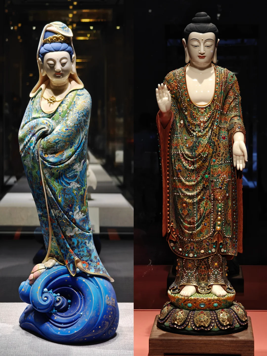 ⚪️极彩·如愿佛:突破德化瓷“单一白”传统,结合唐卡绘画工艺并镶嵌几十种、数千颗天然珠宝