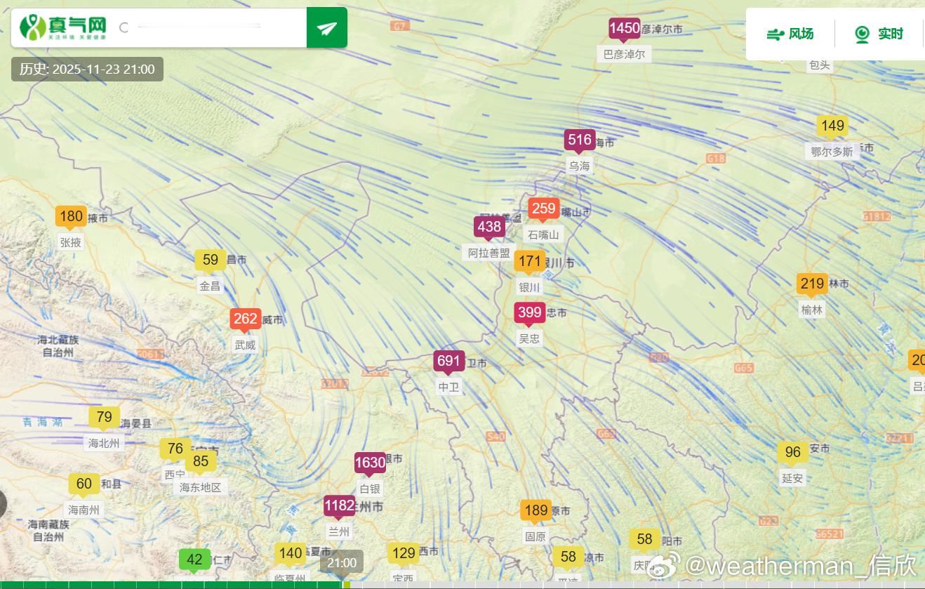 【沙尘】今晚兰州空气质量因为沙尘影响,出现爆表,22时PM10浓度有1262微克/立方米(双倍的爆表)。通常北方地区的沙尘主要集中在春季3-5月,秋冬季相对少。但今天冷空气导致的大风较强,加上近期回暖,地表尚未封冻,还是吹起来沙尘,并向东南下游传输。