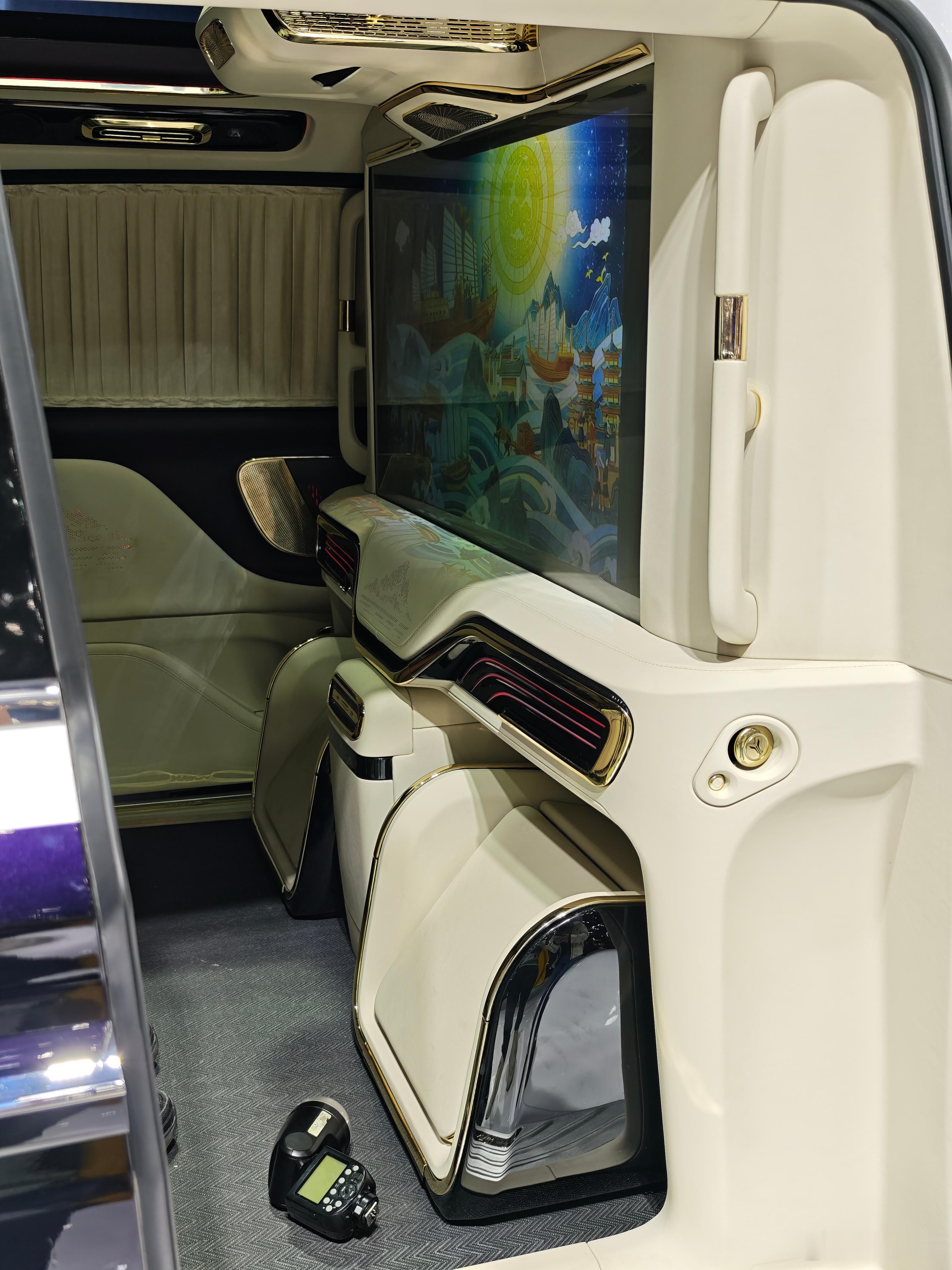 新时代“扮猪吃老虎”车型之——岚图梦想家山河。看外观只是比普通版梦想家多了大饼轮毂。打开车门才发现内有乾坤。大4座布局,前后排完全隔断,大电视,电动滑动腿托,劳斯莱斯同款弹出式雨伞,这个豪华感是到位了。不知道坐起来咋样,如果借到一台,我还得找个司机帮我开开