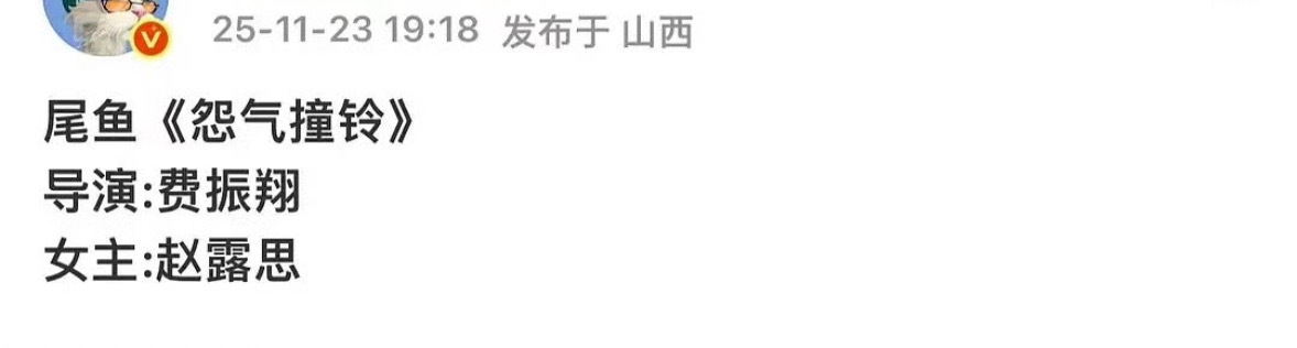 🍉赵露思要演尾鱼的剧了 怨气撞铃 导演还是费振翔 这是露思归来的第一份大礼吗?