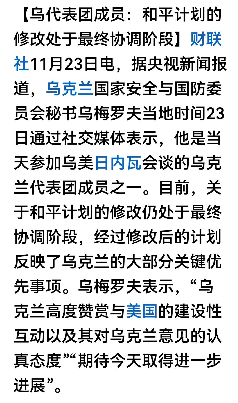 乌克兰己派高级代表赴瑞士与美国代表团谈28条,英国,欧盟代表全程参与。 谈吧!